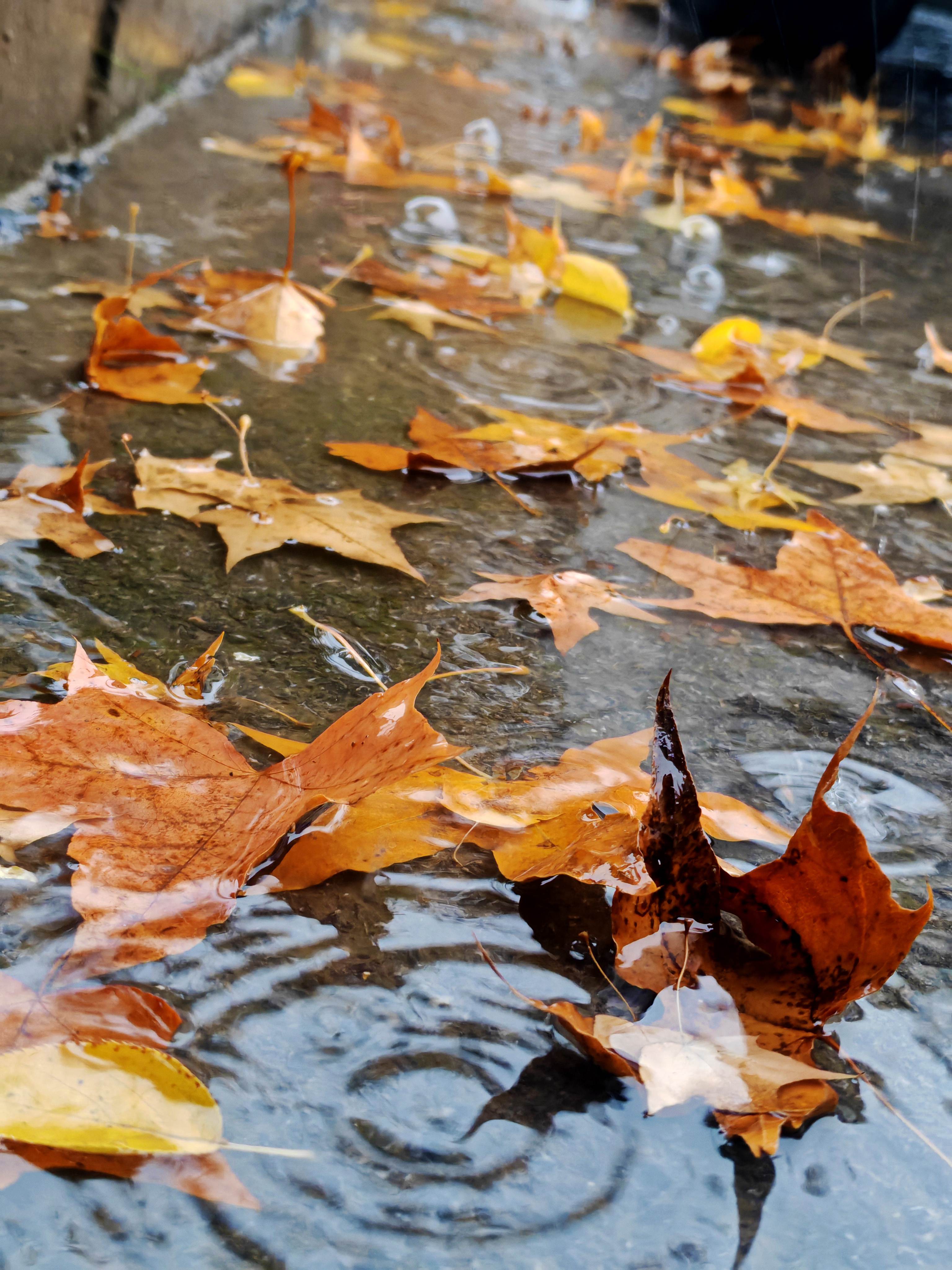 秋雨,带着落叶的声音来了,也带来了深秋的凉意。潺潺秋雨,已伴随凋零的花瓣和树叶渗入了深深的泥土中。细密的雨点儿敲打着瓦片,散出一层薄薄的烟雾,檐上的雨滴滑下来,晶莹地散落在石阶上,跳动的影子清晰地映入眼帘。