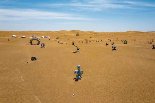 自2018年以来,创作基地连续举办5届沙漠雕塑创作营活动,征集到来自90多个国家和地区2688位艺术家的8815件作品,最终筛选并落地呈现132件作品,将茫茫大漠变成了充满诗意的“雕塑艺术之洲”。