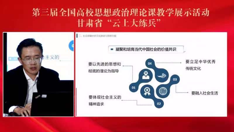 10月22日,第三届全国高校思想政治理论课教学展示活动甘肃省“云上大练兵”磨课活动在兰州大学正式举办,省委教育工委相关负责同志线上参会。会议由兰州大学马克思主义学院负责同志主持,邀请了浙江大学、重庆师范大学、海南大学相关专家进行点评。