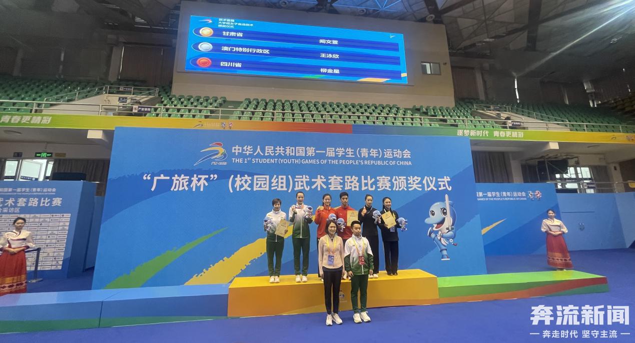 新甘肃客户端讯(新甘肃·奔流新闻记者武永明)11月8日上午,在广西南宁举行的第一届全国学生(青年)运动会(简称“学青会”)武术套路比赛中,代表甘肃代表团出战的兰州大学高水平武术队员2022级管理学院学生阚文萱以9.680分夺得大学组女子剑术冠军。这是甘肃代表团在本届学青会上摘得的首枚金牌。