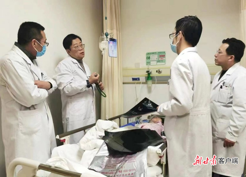 甘肃中医药大学附属医院副院长刘建军查看伤者恢复情况。