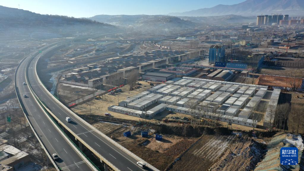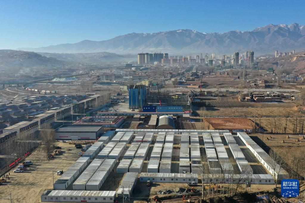 这是12月27日拍摄的积石山县吹麻滩镇集中安置点(无人机照片)。新华社记者 陈斌 摄