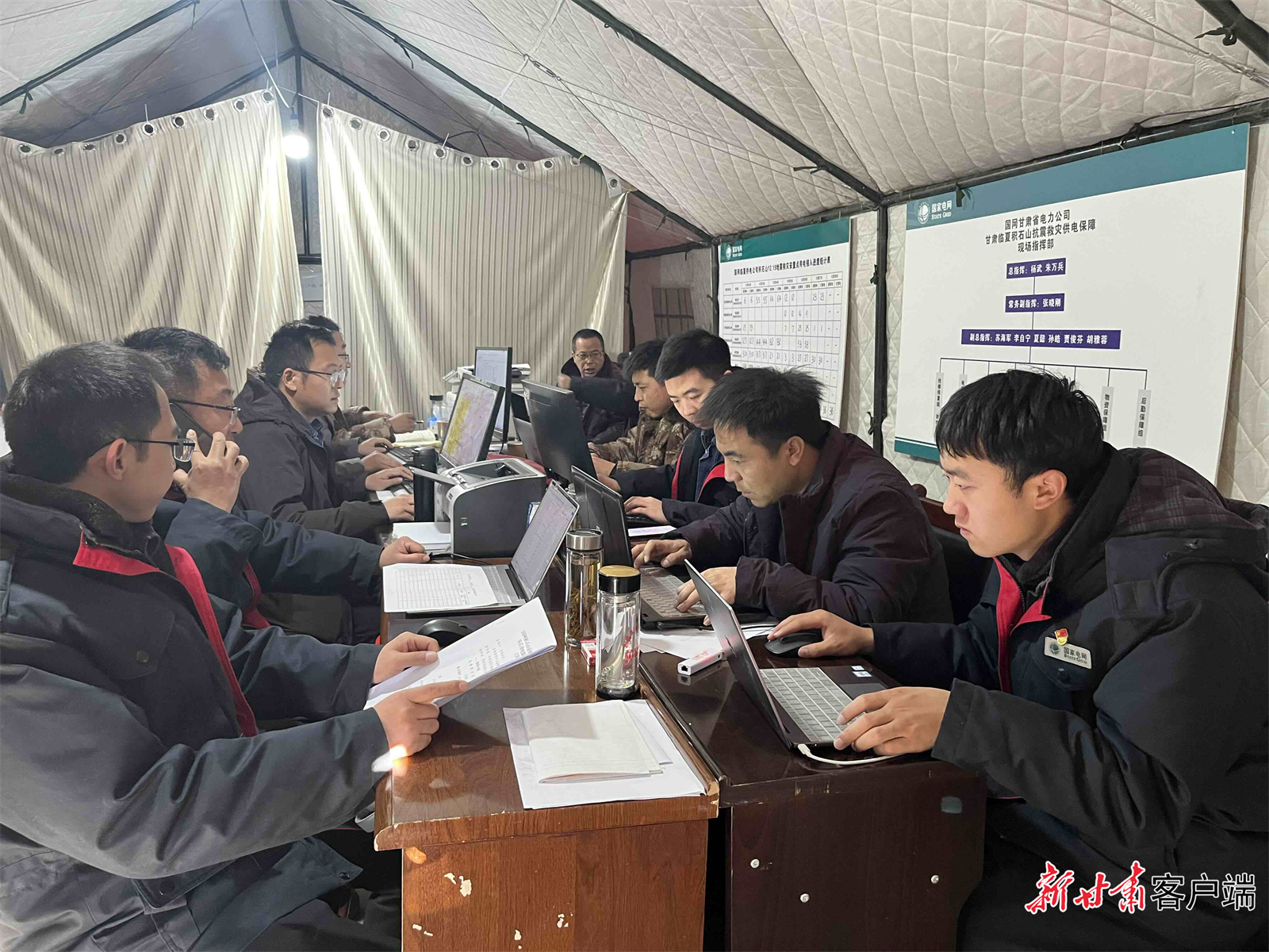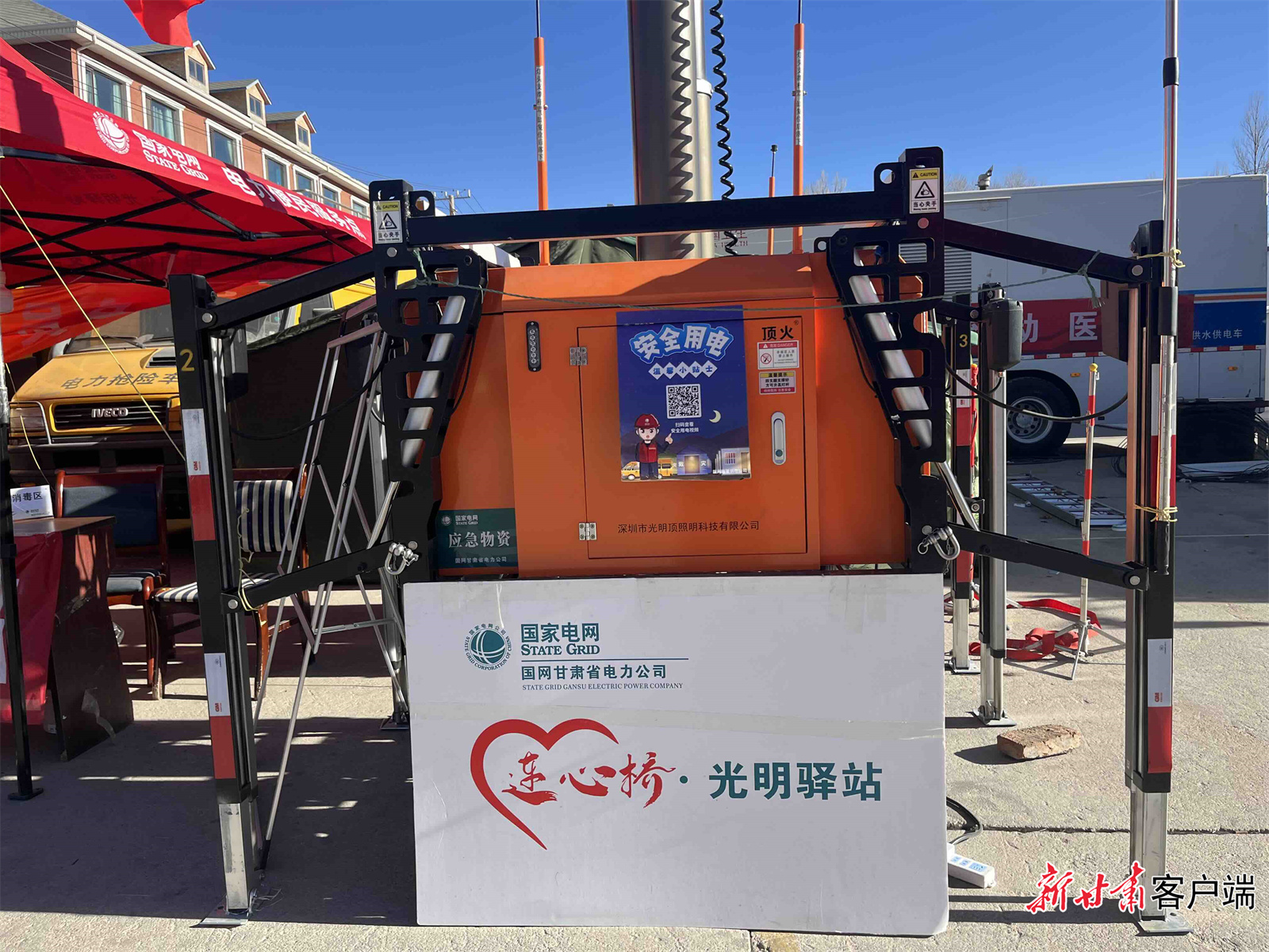 “连心桥·光明驿站”的背后,是国网甘肃省电力公司省市县三级公司坚守一线,为灾区群众做好电力服务。