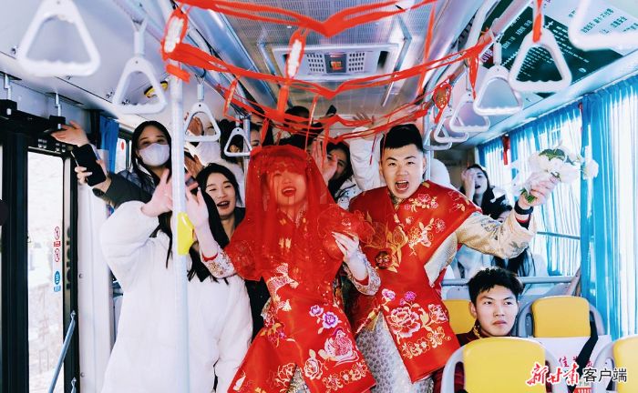 “用公交车当婚车,这样的婚礼方式简约浪漫、经济实惠,还彰显了时尚与个性。”新郎何正聪说。