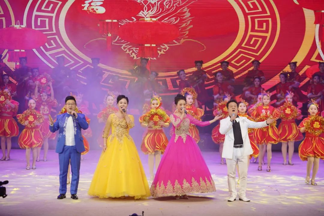 拜年啦!歌舞声中,4名主持人璀璨登场向华亭人民拜年送祝福。