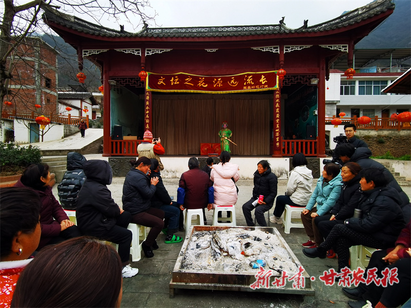 当地老人介绍,玉垒花灯戏,最早约出现在明末清初年间,主要流传于文县玉垒乡和碧口镇。在表演形式上借鉴了秦腔、川剧的特点,音乐唱腔上吸取了陇南民歌、小曲音乐等特点,使花灯戏从最初的秧歌剧中脱胎而出,生、旦、净、丑角色齐全,成为一种较大型的戏曲剧种。每年正月,四邻八乡的群众和过往商客便云集于此,观看“花灯戏”的表演。