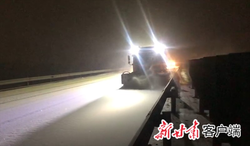 金昌公路事业发展中心金川公路段的职工连夜上路除雪。新甘肃·甘肃日报通讯员 张豆