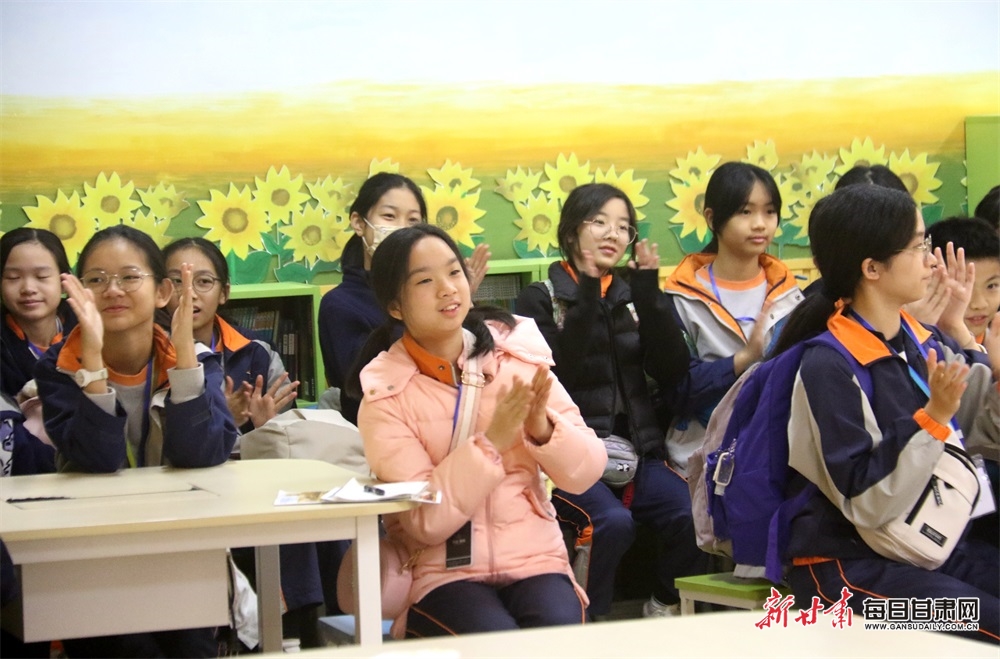 香港港大同学会小学研学团学生在敦煌市北街小学观看课本剧和特色课间操,互动体验敦煌舞蹈、剪纸等特色活动,感受敦煌文化,增进学习交流。据了解,2018年12月,香港港大同学会小学与敦煌市北街小学缔结为姊妹学校。