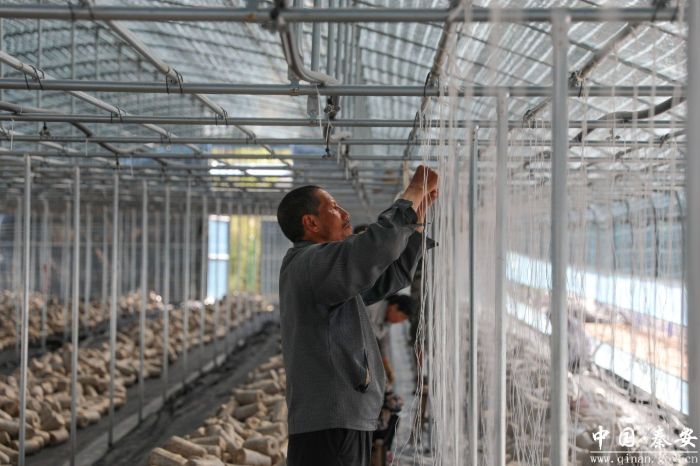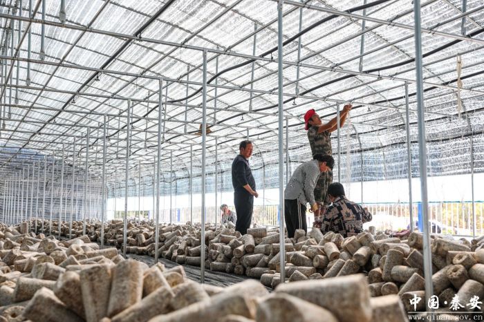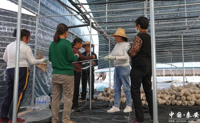 近日,记者来到秦安县兴丰镇黑木耳种植基地,只见工人们正在进行吊袋木耳种植的前期准备工作,焊接铁架、调直钢管、排线布管、装卸菌棒,一片热火朝天的忙碌景象。
