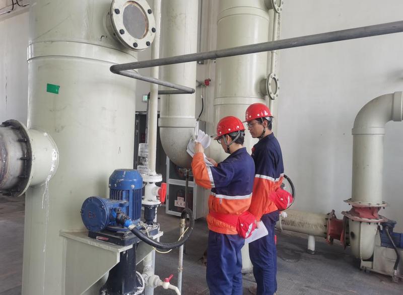 检查过程中,专精特新公司安环部和事业部技术员深入各企业现场,对环保设施合格证、生产单位、环保设施设计单位等资料进行了认真、仔细的核对;对各企业尾气中的易燃易爆气体按闪点高低、遇水反应性和气体相互反应性等理化性进行安全风险辨识。此外,工作人员还对环保设施运行台账、无组织废气的收集、尾气系统的静电导出等设备设施运行管理及安全措施方面存在的问题进行了排查。