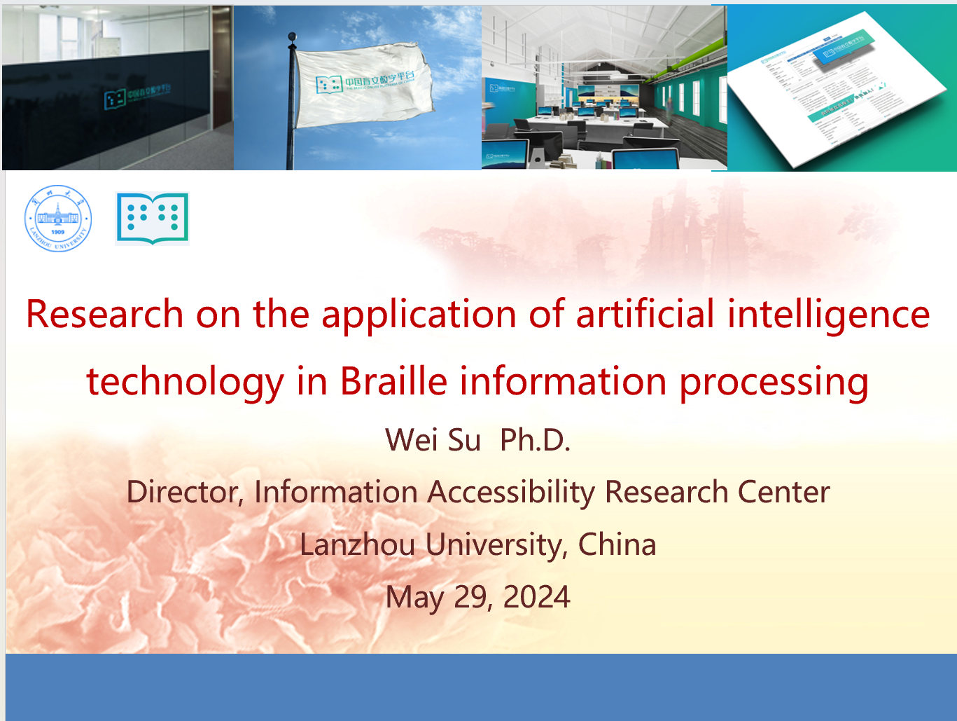 苏伟教授的报告以“人工智能赋能盲文处理:助力残障人士获取信息”为主旨,深入探讨人工智能技术在盲文信息处理中的应用研究。他在报告中提出当前大模型技术在处理盲文方面的挑战,并重点介绍了针对盲文分词、图像盲点生成、乐谱盲文翻译、公式语音合成等问题的解决方案。报告介绍了兰州大学研究团队研发的“中国盲文数字平台”,该平台利用新一代人工智能技术取得了盲文信息处理领域的突破性进展,为我国1700万视障人士提供在线智能服务。