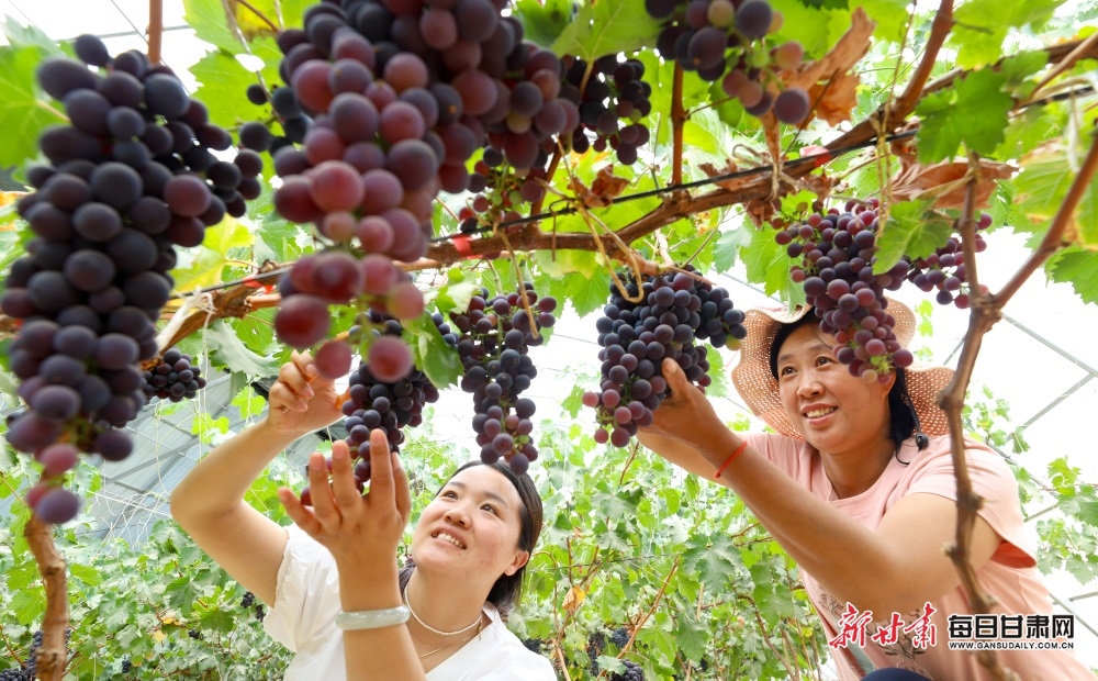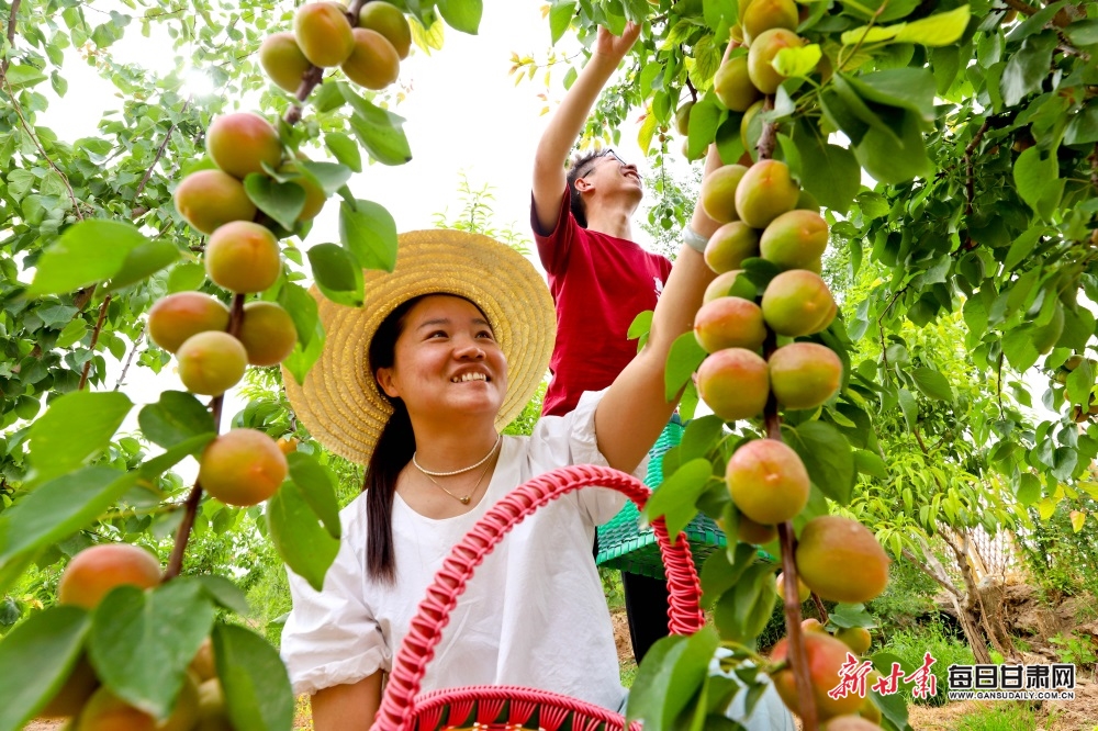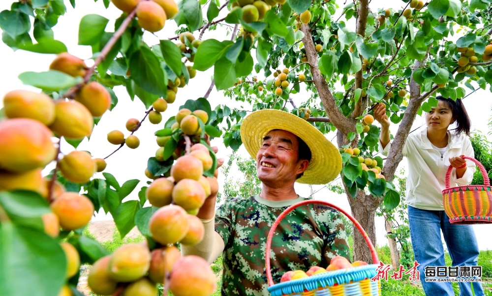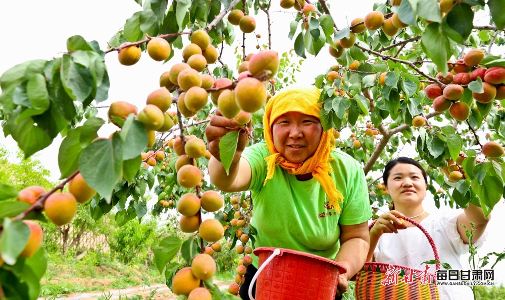 夏日,瓜果飘香。临泽县板桥镇迎来丰收季,果农们正在采摘成熟的杏子、桑葚、葡萄。