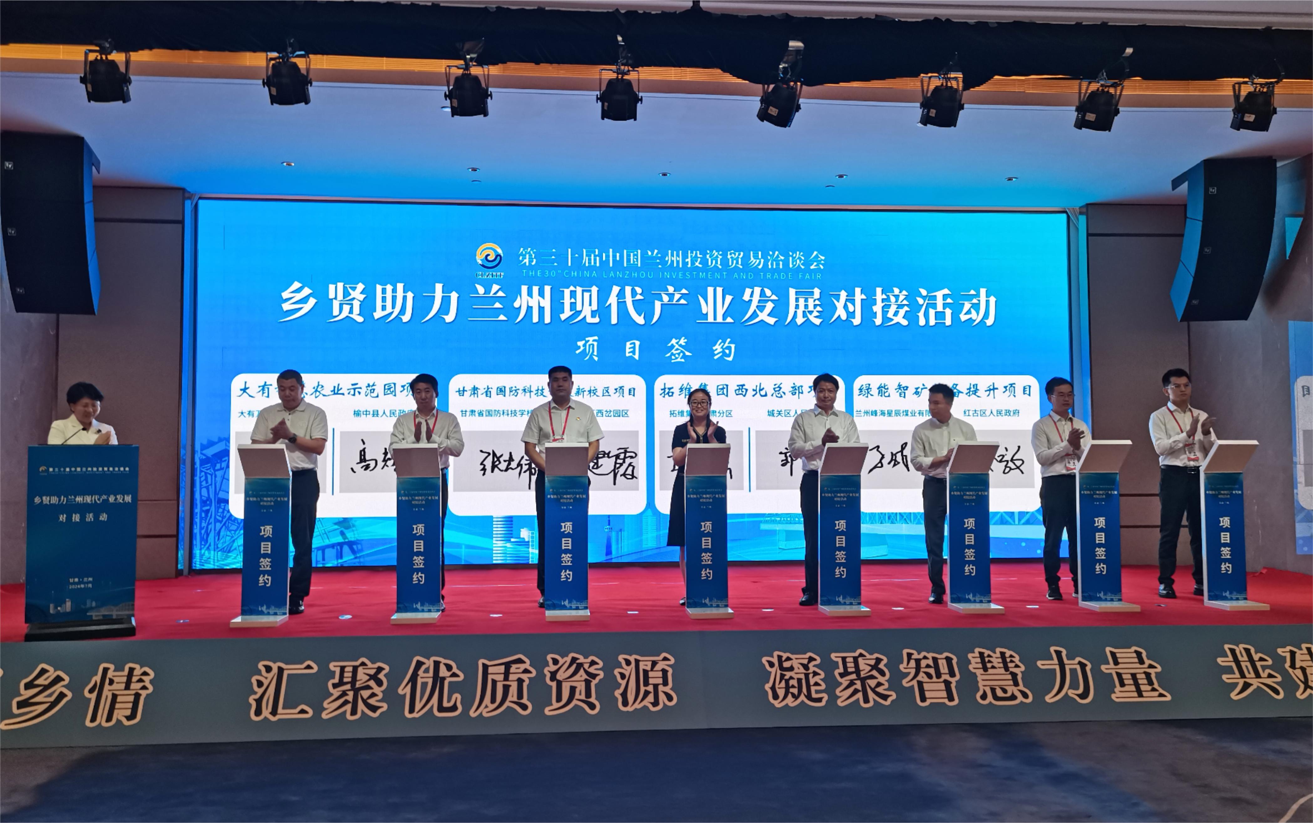 在签约仪式上,项目对接县区分别与兰州高新区康盛医药集团产业园、拓维集团西北总部、榆中县大有未来(甘肃)农业产业开发有限公司现代智慧农业示范园等12个项目单位进行集中签约,签约投资总额41.5亿元。(冉旭东)