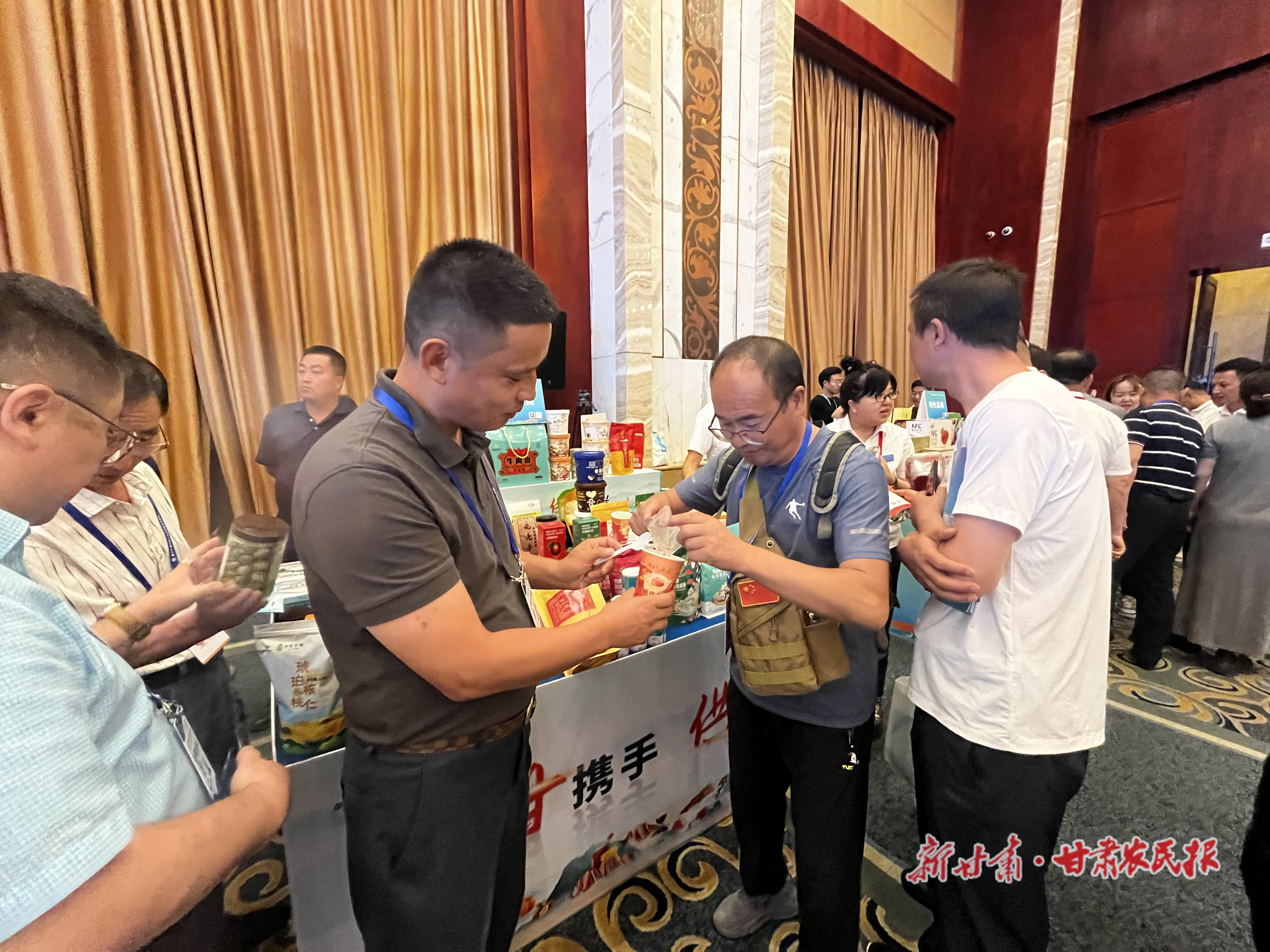 7月7日下午,在第三十届兰洽会主要活动之一的“2024甘肃特色农产品产销对接活动”休息间隙,韩永勤不大的展位上围满了客商。