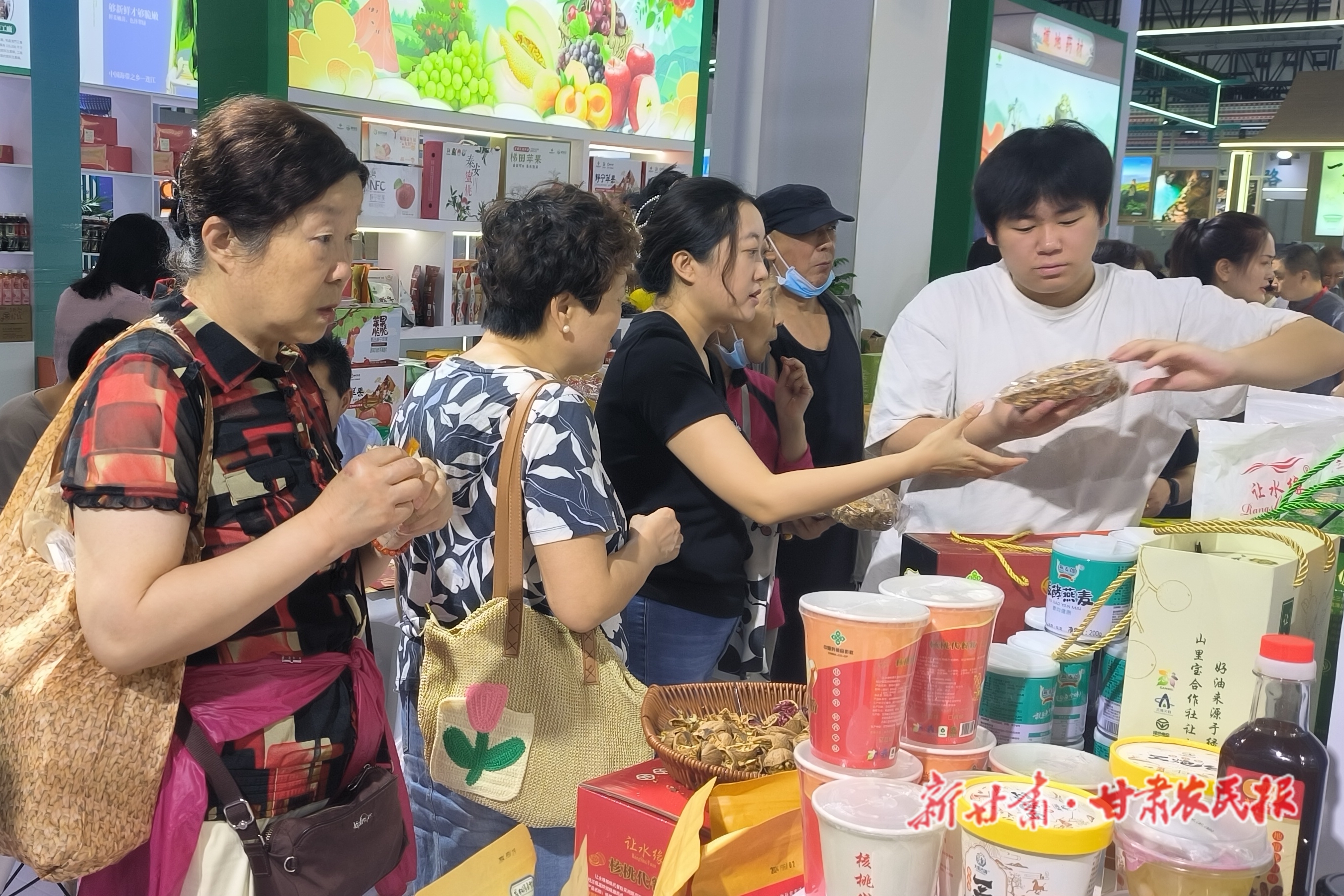 顾客正在选购核桃产品。