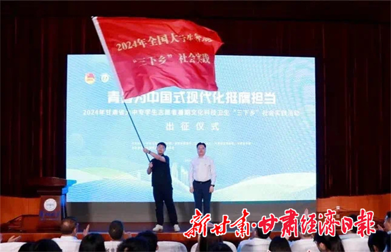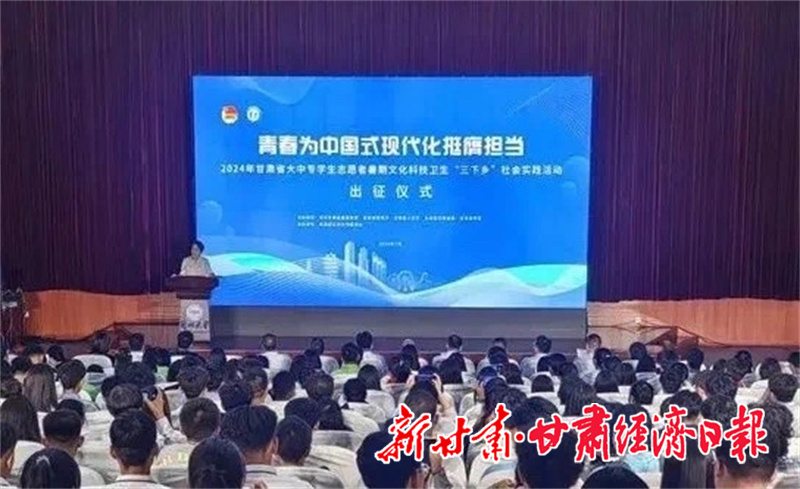 新甘肃客户端兰州讯(新甘肃·甘肃经济日报记者 房惠玲)7月11日,团省委联合省委宣传部、省教育厅、省人社厅和省学联在兰州大学共同举办“青春为中国式现代化挺膺担当”——2024年甘肃省大中专学生志愿者暑期文化科技卫生“三下乡”社会实践活动出征仪式。