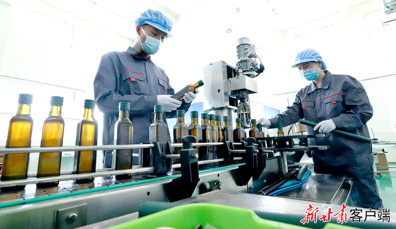 8月5日,高台县宏晟油脂食用保健油包装生产线上,工人们正在检测食用保健油的质量。近年来,高台县强化政策扶持、项目支撑,着力扶持壮大龙头企业、积极培树农产品品牌,推动农产品精深加工提质增效,持续做强现代农业产业链,为乡村振兴赋能增效。