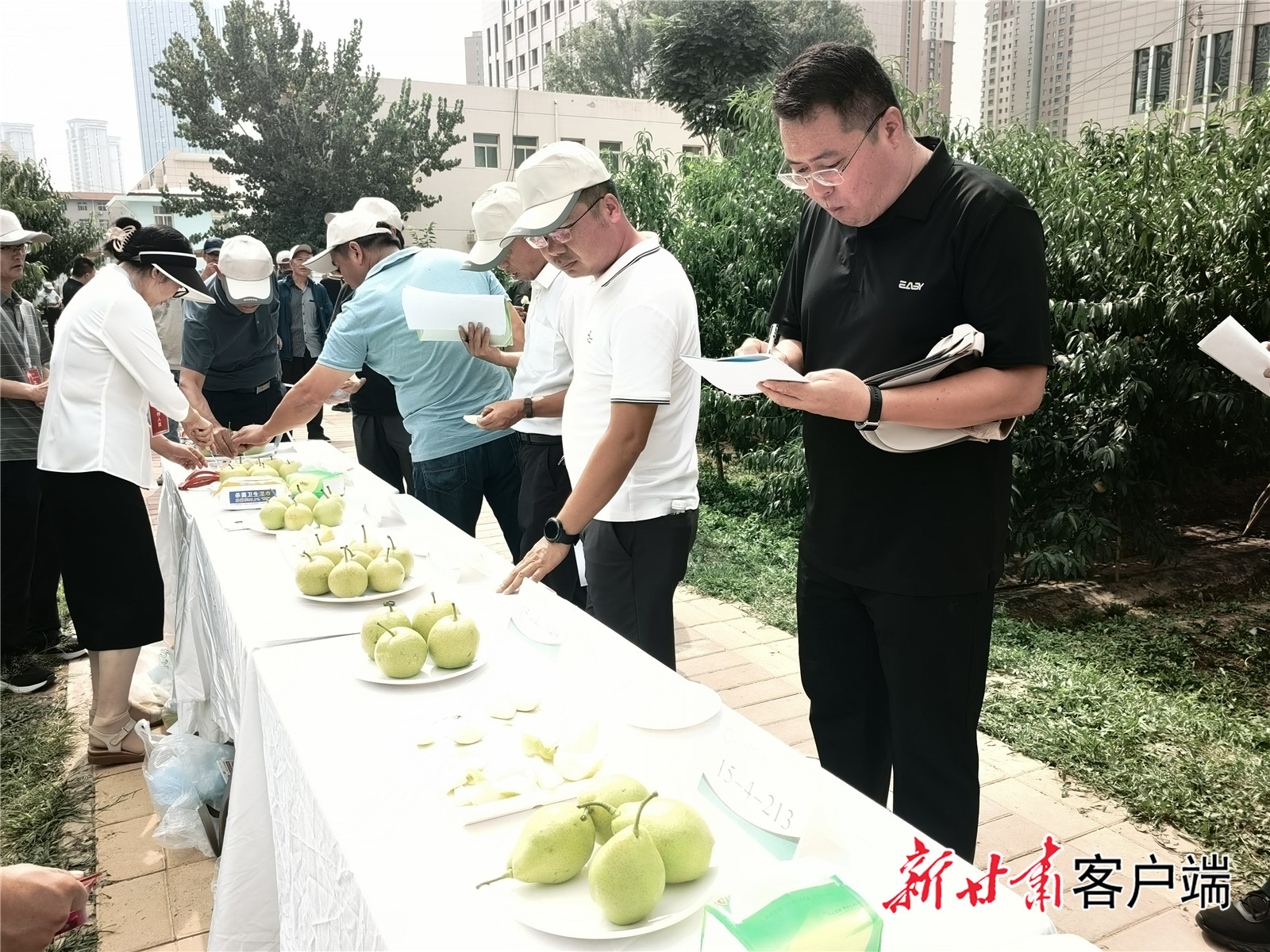 专家品鉴梨新品种并打分。