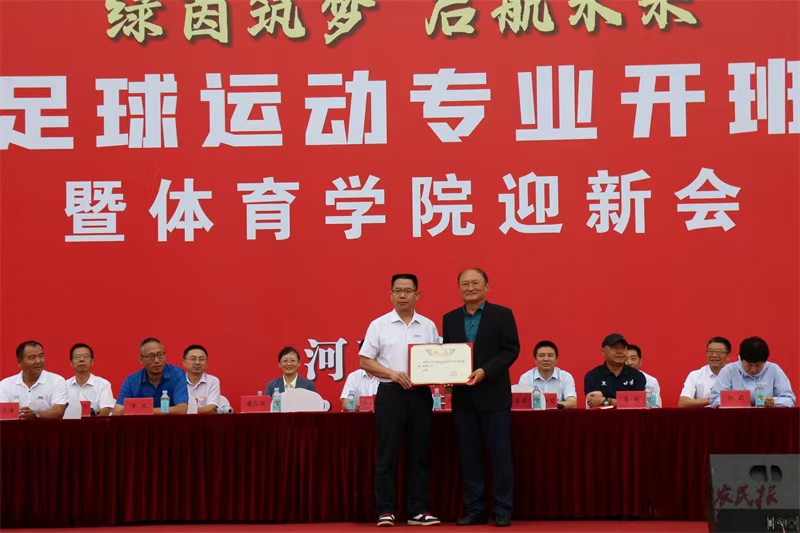 当日的开班仪式上,河西学院党委副书记、校长周勇为北京体育大学博士生导师李春满教授颁发河西学院客座教授聘书;工作人员宣读北京体育大学、上海体育大学、西北师范大学等省内外31所高校向河西学院首届足球运动专业开班发来的贺信、贺电;张掖市足协为河西学院首届足球运动专业新生赠送足球。