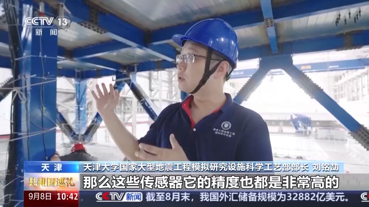 天津大学国家大型地震工程模拟研究设施科学工艺部部长 刘铭劼:我们安装的传感器加在一起有500多个,那么这些传感器它的精度也都是非常高的,比方说我们测量结构变形的传感器,它的最小测量的值是0.1个毫米,比我们头发丝直径还要再小。