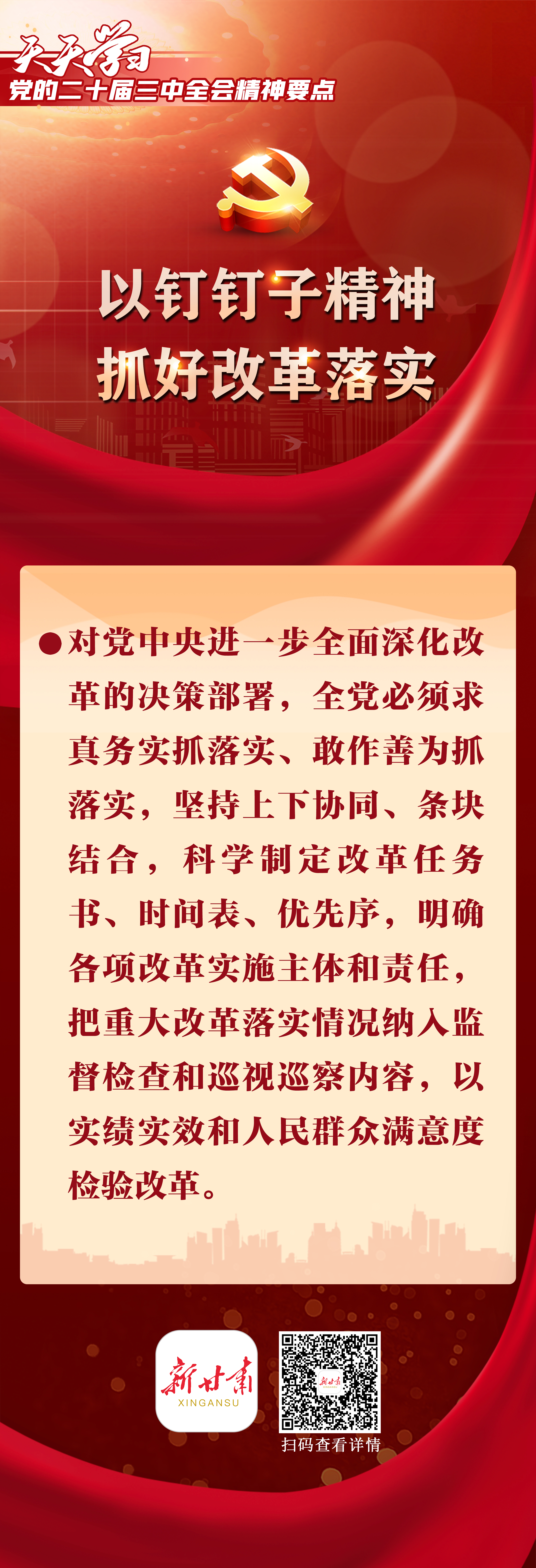 【天天学习 | 党的二十届三中全会精神要点(第60期)】以钉钉子精神抓好改革落实