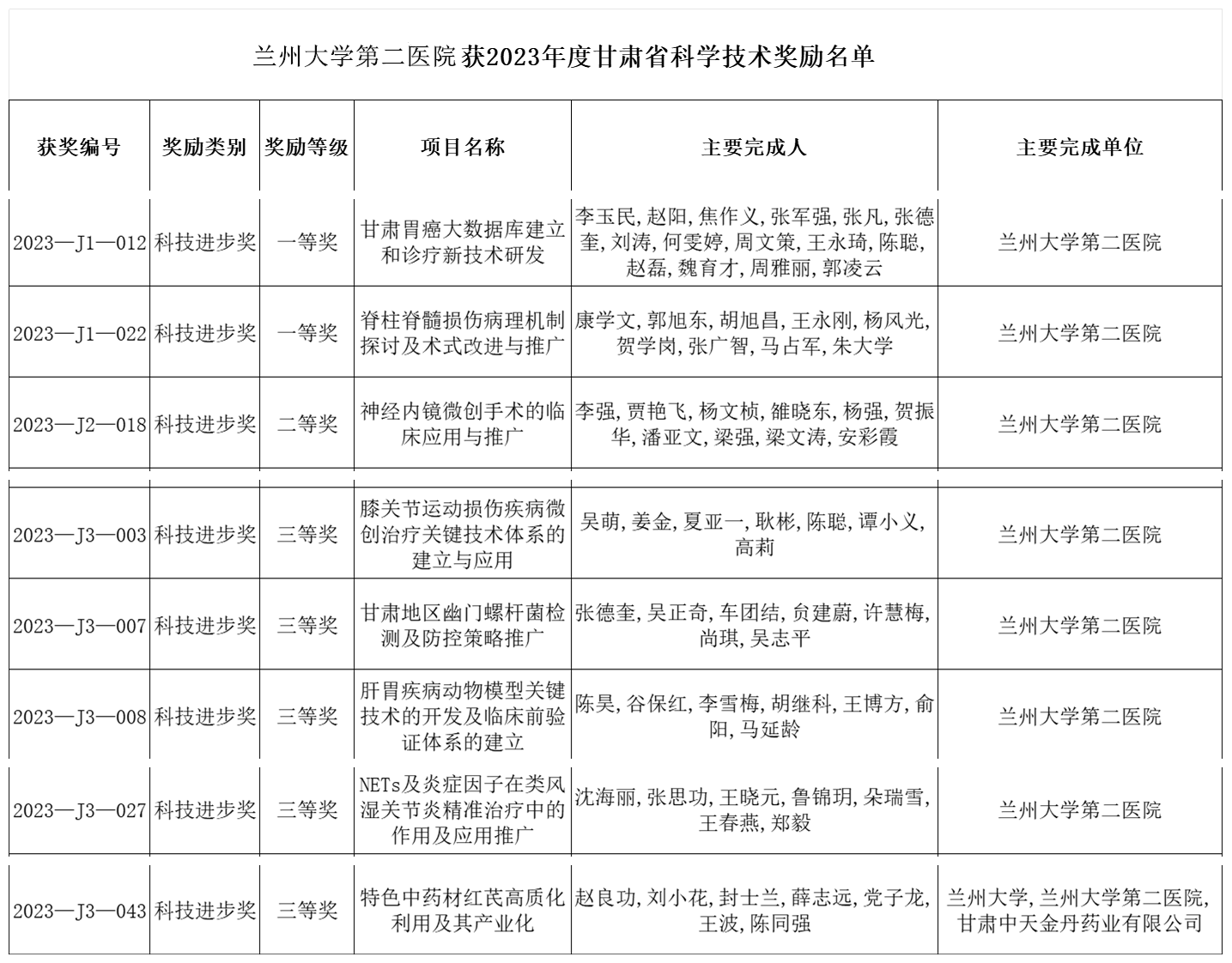 新甘肃客户端兰州讯(新甘肃·甘肃经济日报记者 王耀)近日,2023年度甘肃省科技进步奖评选结果揭晓,兰州大学第二医院(第二临床医学院)8项科研成果荣获2023年度甘肃省科技进步奖,其中一等奖2项,二等奖1项,三等奖5项,获奖数量较2022年增加3项。