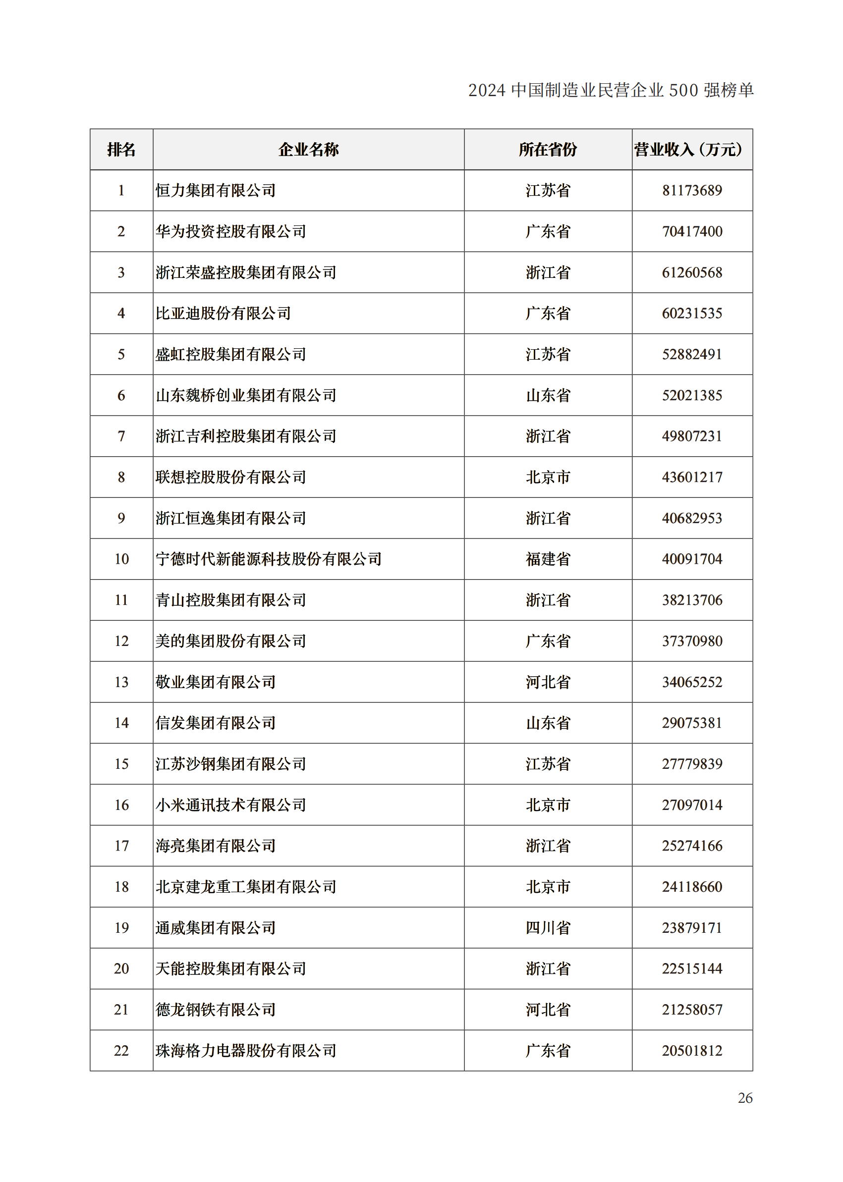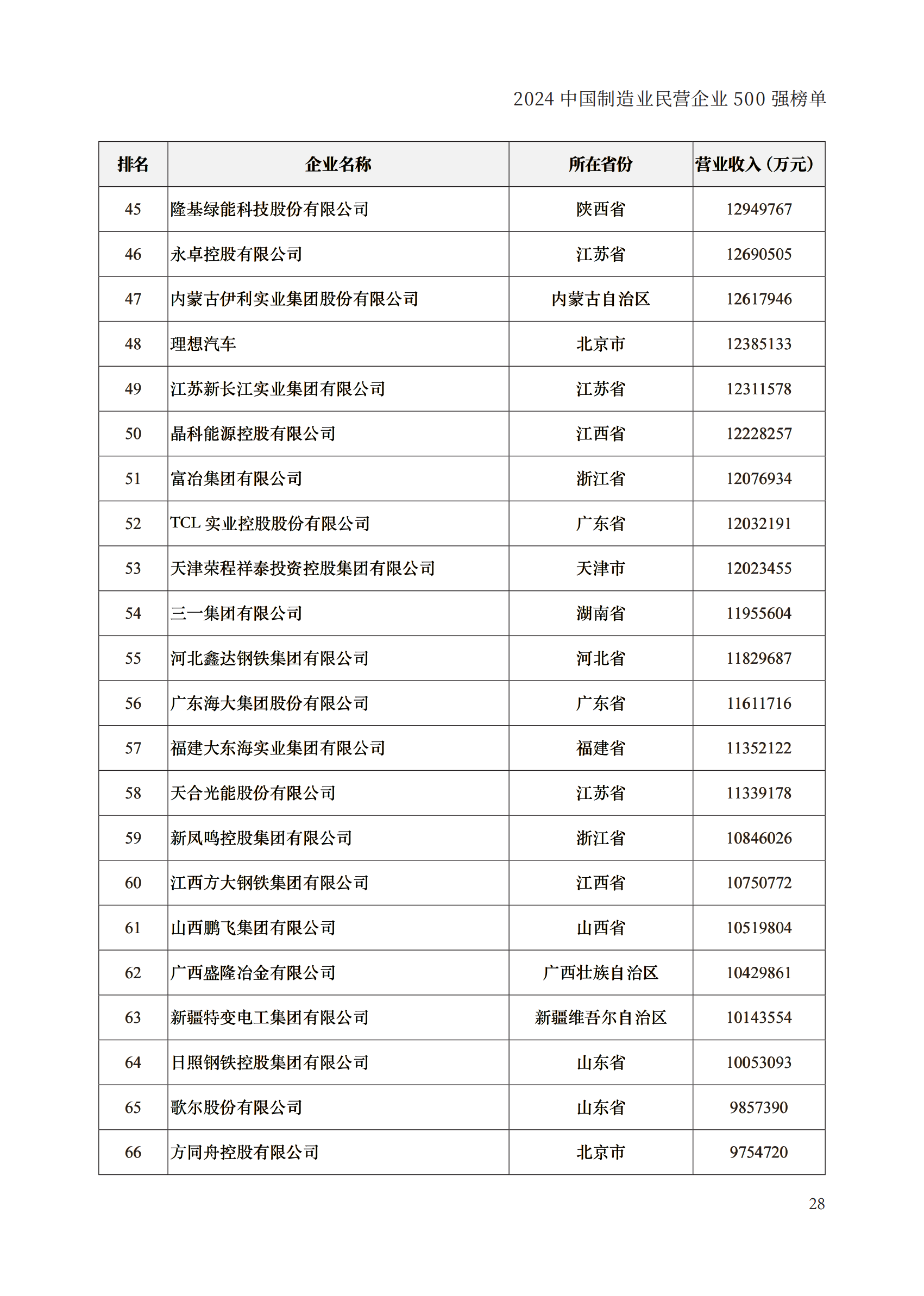 2024中国制造业民营企业500强榜单在兰州揭晓