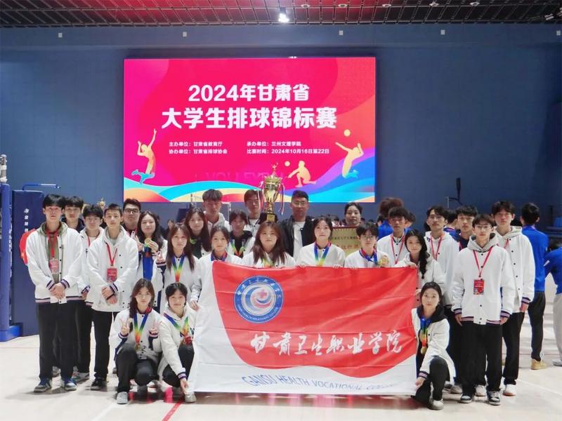 新甘肃客户端讯(新甘肃·兰州新区报记者 姜波)10月22日,2024年甘肃省大学生排球锦标赛圆满闭幕。甘肃卫生职业学院女子排球队以三战三胜的优异成绩荣获女子丙组冠军。该校男子排球队获得男子丙组第七名,学校获得2024年甘肃省大学生排球锦标赛优秀组织奖,教练员雷玉民、马嵘、崔靖、杨紫昕获得“优秀教练员”荣誉称号。