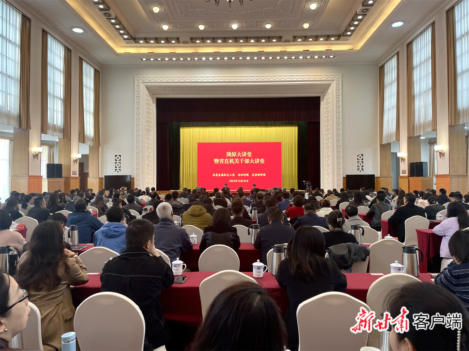 新甘肃客户端兰州10月29日讯(新甘肃·甘肃日报记者 牛巧丽)今天上午,省委直属机关工委、省社科联、省委讲师团联合举办陇原大讲堂暨省直机关干部大讲堂,邀请浙江经济职业技术学院马克思主义学院院长梁丽华,以《进一步全面深化改革推进中国式现代化——党的二十届三中全会精神学习体会》为题作辅导报告。