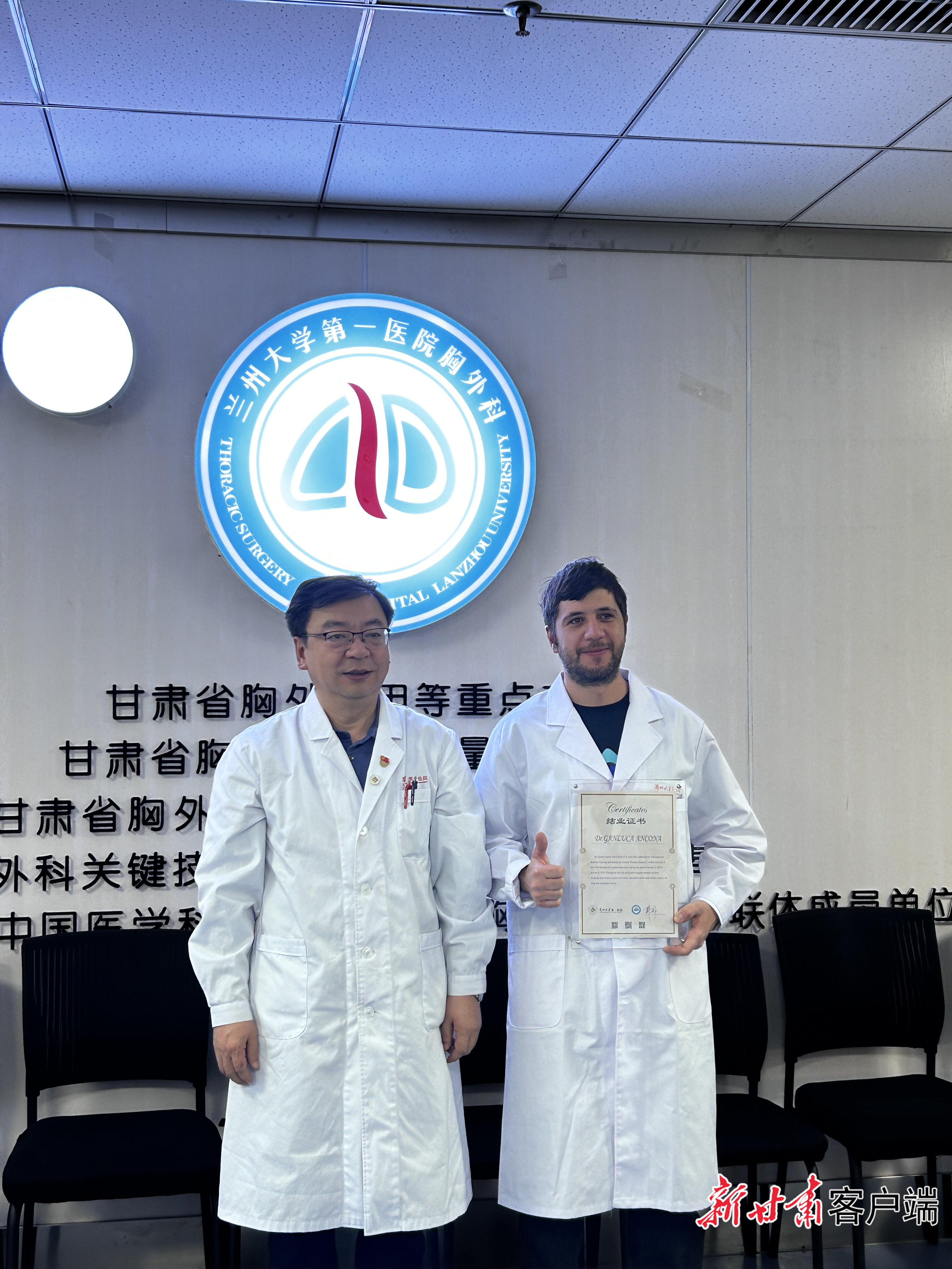 Gianluca Ancona医生来到兰州后拥有了自己的中文名字:光明,进修期间光明同学与科室内的胸外科专家共同工作,学习和交流胸外科领域的前沿技术,学习手术技术及病房教学,同时参与甘肃省胸外科医疗质量控制中心县级医院质控建设工作。此次欧洲胸外科高级医生的进修,标志着兰州大学第一医院胸外科在国内外医疗界影响力的进一步提升,也彰显了其在国际医疗领域的吸引力和影响力。