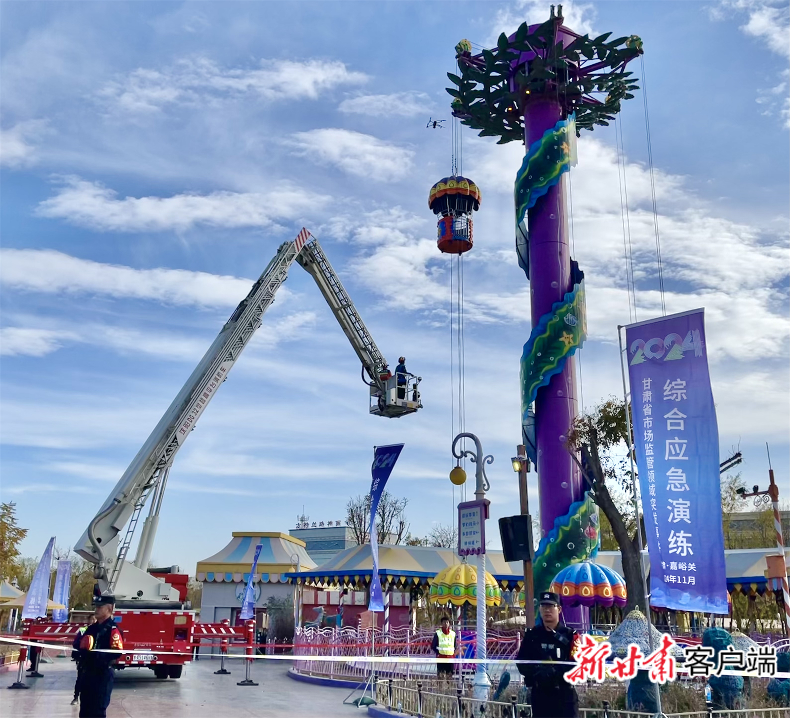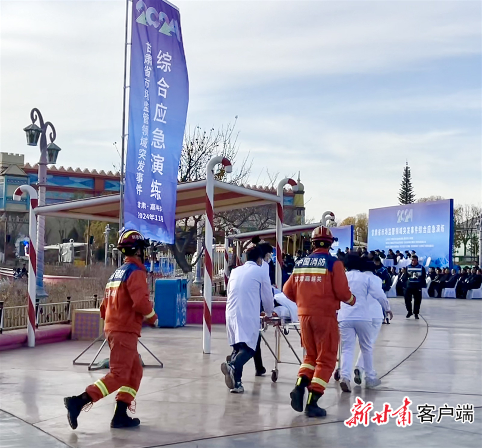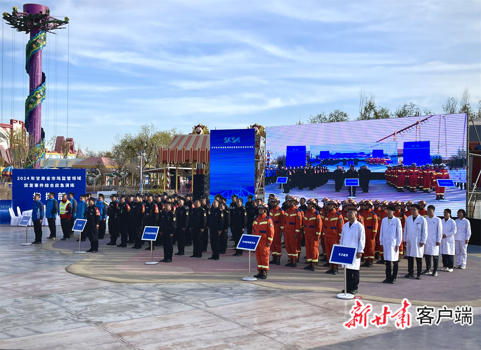 针对这一状况,11月13日下午,在嘉峪关市方特丝路神画广场上,2024年甘肃省市场监管领域突发事件综合应急演练活动拉开序幕,一场紧张有序的“救援行动”正在上演。