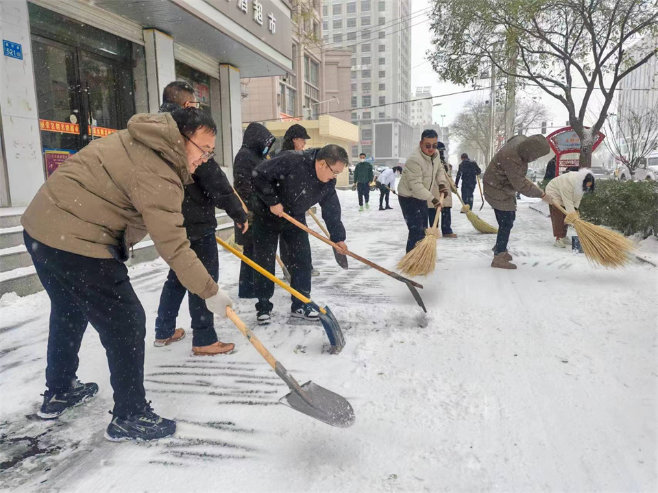 24日上午,大地银装素裹。各部门、单位广大干部职工以“雪”为令,纷纷拿起铁锹、扫帚等工具,对主次干道、人行道、公交站台等重点区域进行清扫。街道上,干部职工热情高涨,有的奋力挥动铁锹,将厚重的积雪铲到一旁;有的拿着扫帚,仔细地清扫着残留的雪花,大家分工明确、配合默契,清雪现场一片热火朝天的景象。与此同时,各街道社区也积极组织志愿者参与清雪行动,共同为市民营造安全、畅通的出行环境,赢得了市民的广泛赞誉。