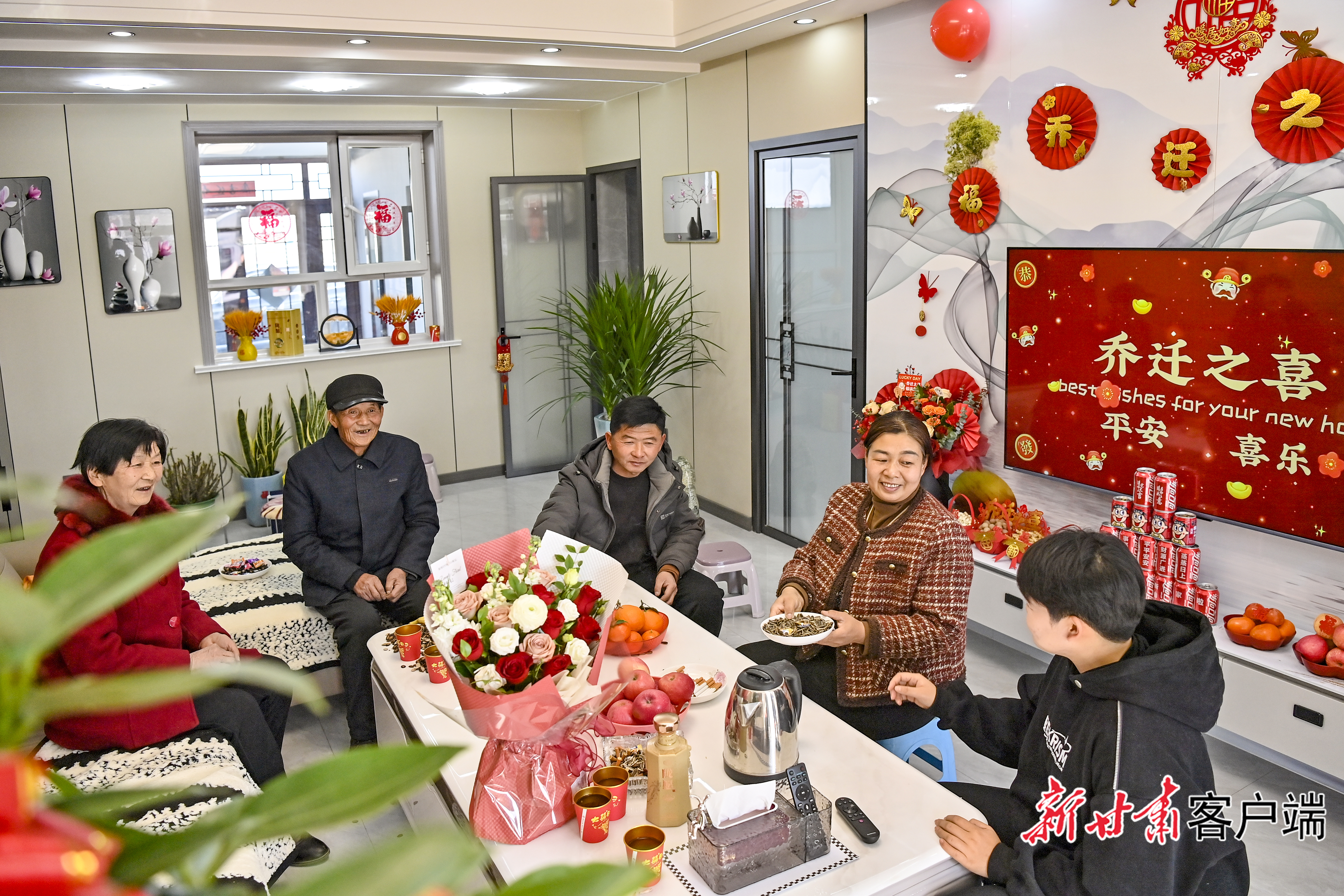 金塔镇营泉村地质灾害避险搬迁安置点,搬进新居的祖孙三代其乐融融。新甘肃·甘肃日报记者 郁婕