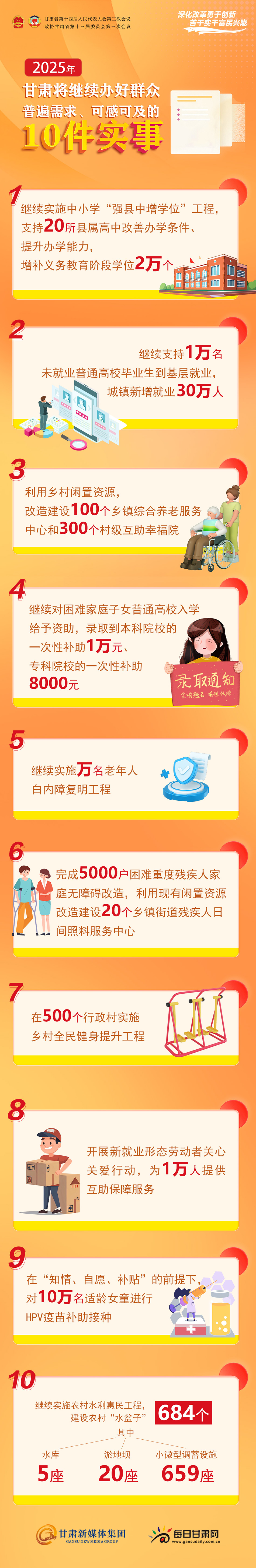 【长图·政府工作报告解读】2025年甘肃将继续办好群众普遍需求、可感可及的10件实事