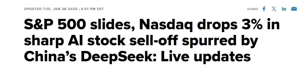 CNBC:人工智能股票在DeepSeek的刺激下大幅抛售