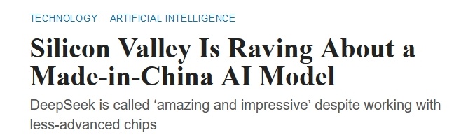 一夜之间,DeepSeek在各大社媒的屠版也引发了从华尔街到硅谷的恐慌,并霸榜各大美媒头条。