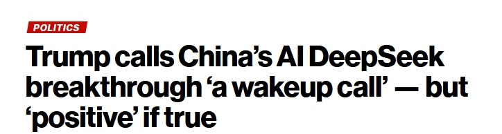 当地时间1月27日晚,特朗普在佛罗里达州迈阿密发表讲话时,对DeepSeek搅动纳斯达克一事表示,DeepSeek的出现“给美国相关产业敲响了警钟”,美国“需要集中精力赢得竞争”。特朗普同时表示,他认为,DeepSeek的模型高效且经济,其出现是一种积极的发展。