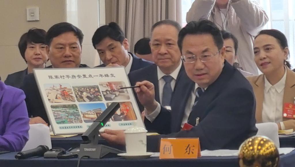 一年前的甘肃代表团开放团组会议上,何东代表也曾展示过积石山地震灾后恢复重建的展板。不同的是,当时的展板上大多是一幅幅规划设计图;如今,它们已经成为现实。