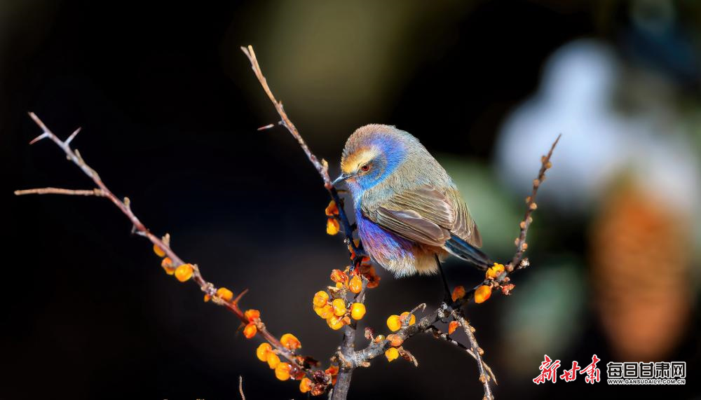 3月2日,初春的甘肃祁连山国家级自然保护区管护中心马蹄自然保护站林区,几只花彩雀莺正在悠闲觅食、鸣唱、飞舞。新甘肃·每日甘肃网通讯员 杨永伟 韩亚伟