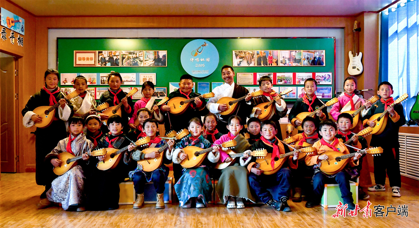 3月3日,国家级非物质文化遗产代表性项目龙头琴弹唱传承人加措带领20多名孩子练习弹唱,琴声与童声交织,在教室里悠扬回响。新甘肃·甘肃日报记者 马伊星