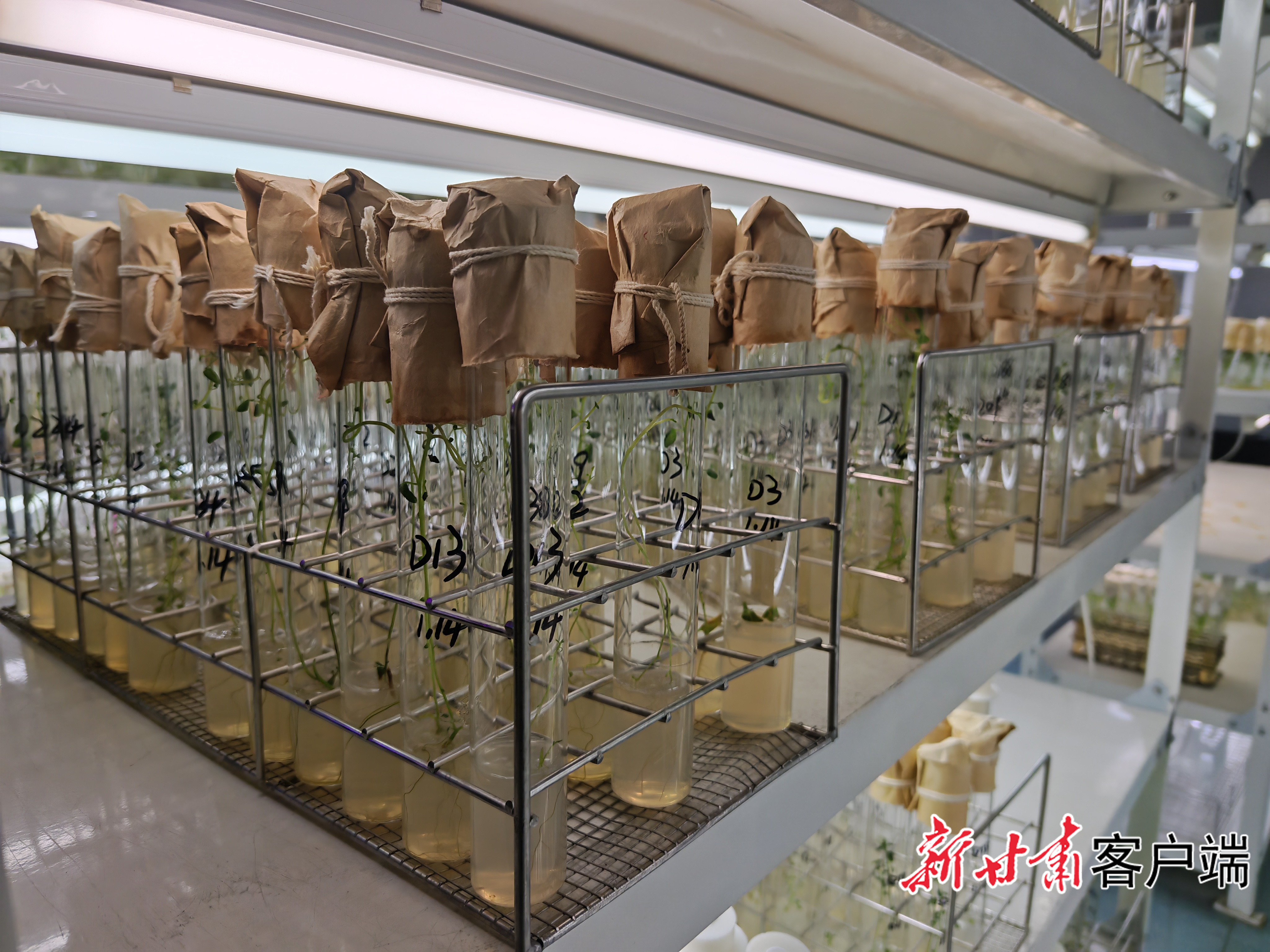 近日,走进甘肃农业大学省部共建干旱生境作物学国家重点实验室,台上摆满色泽金黄的马铃薯,张峰教授正在指导学生做马铃薯育种实验。