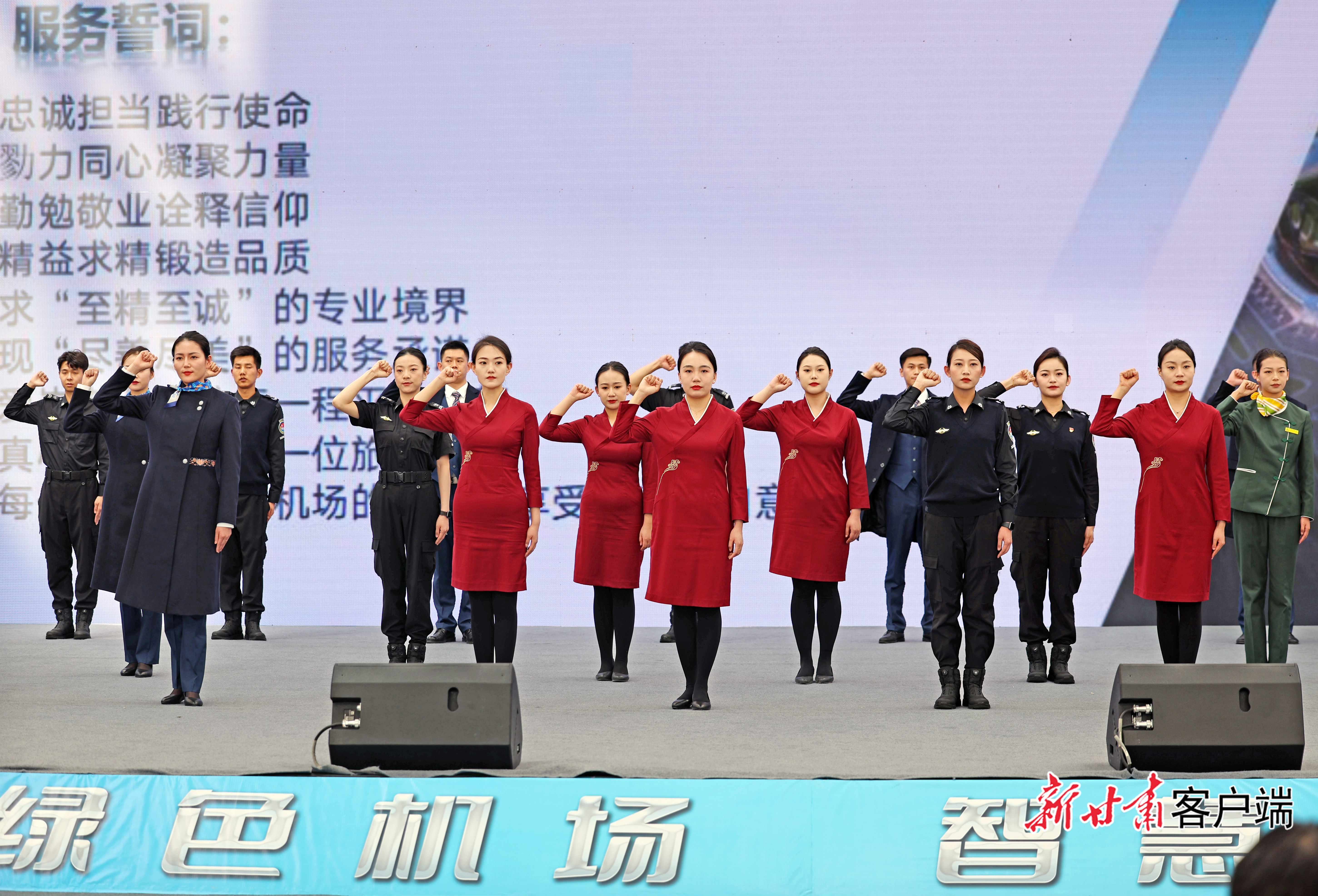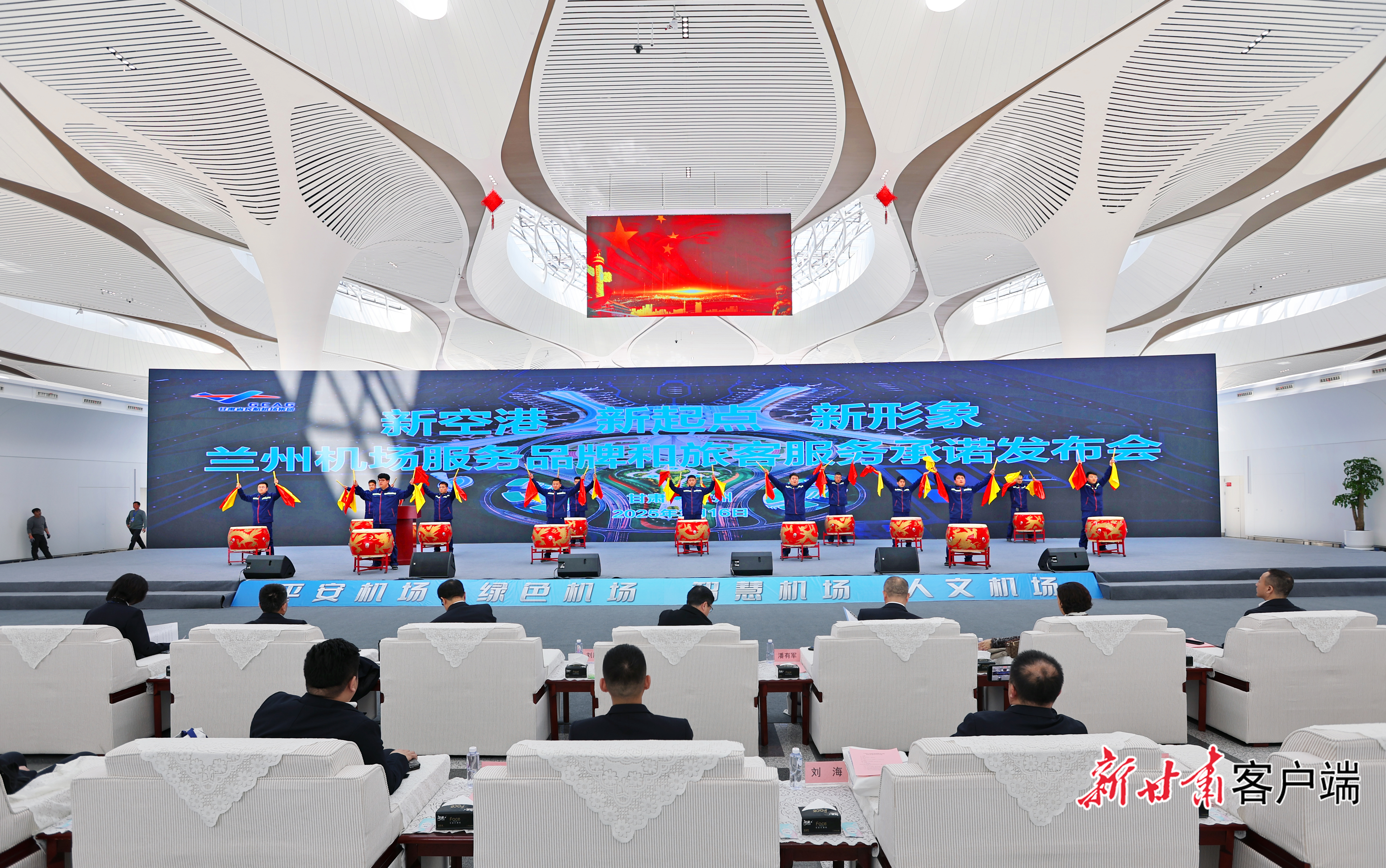 3月16日下午,以“新空港、新起点、新形象”为主题的“乘心如意”服务品牌暨旅客服务承诺发布会在兰州中川国际机场T3航站楼出发大厅举行。