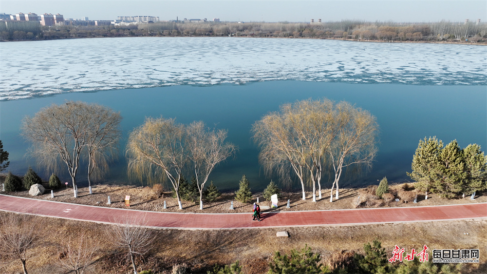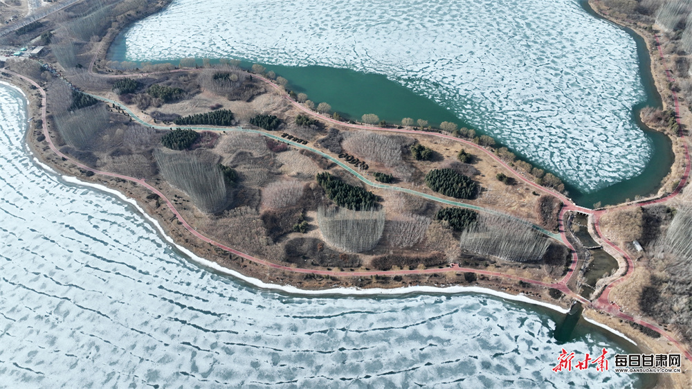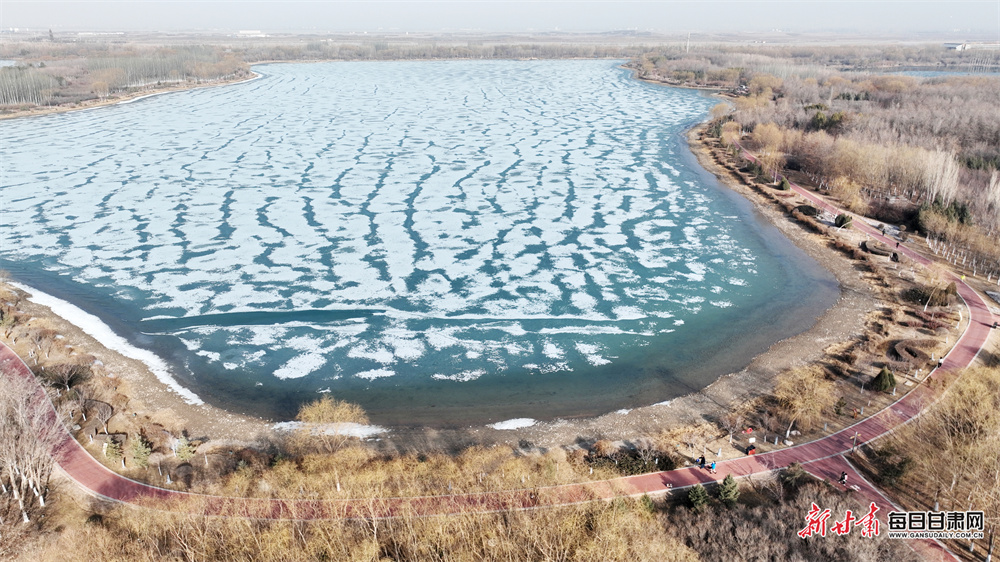3月22日,春回大地,张掖芦水湾生态景区宽阔的湖面正经历着冬春交替的奇妙变化。尚未消融的冰层在阳光的映照下,呈现出绚丽的色彩,橙、黄、蓝、白交织在一起,像是大自然精心绘制的抽象画。在冰层边缘,湛蓝的湖水已开始自由流淌,碧波荡漾,与斑斓冰面相映成趣。