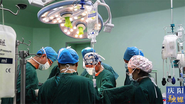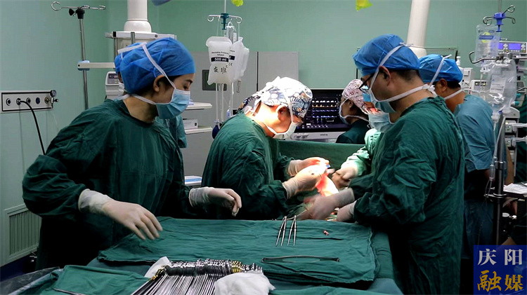 ▲张步升和庆阳市人民医院医护团队开展手术。