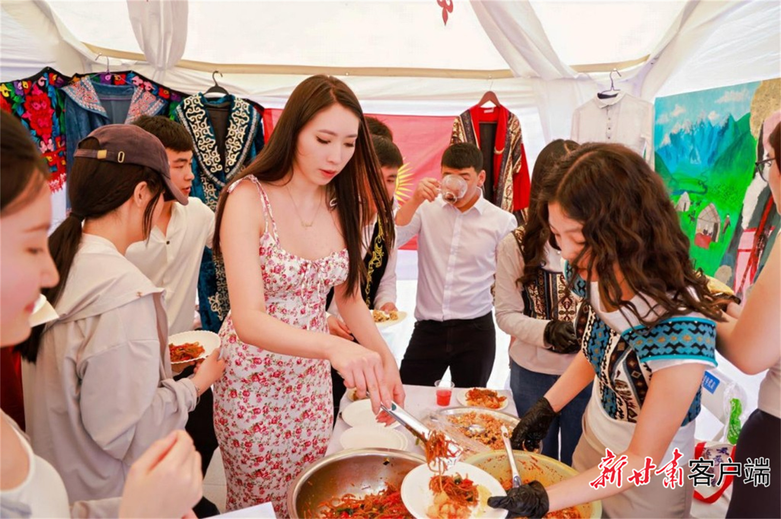 活动当天,场外还同步举行了“言韵五洲·文汇四海”西北师范大学第九届世界各国文化风情展,吸引巴基斯坦、俄罗斯、越南等国千余名师生参与。活动设置“游世界”主题展区、非遗技艺体验区展示,以沉浸式互动促进跨文化交流,搭建中外人文交流桥梁。