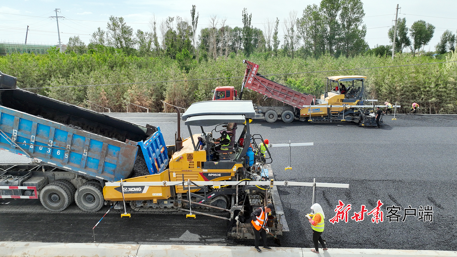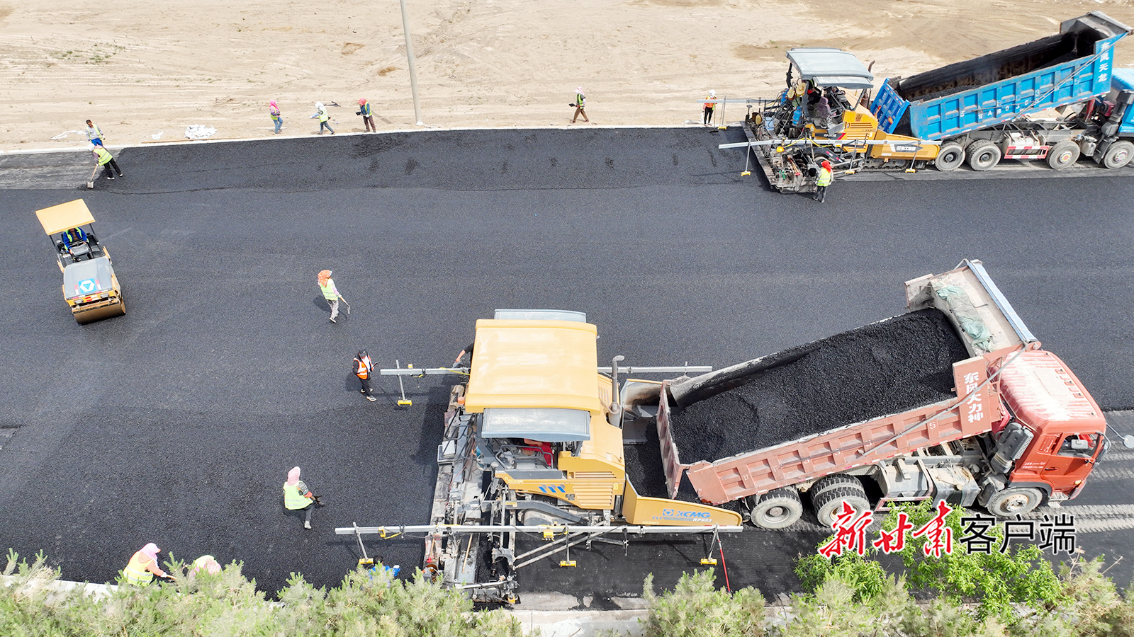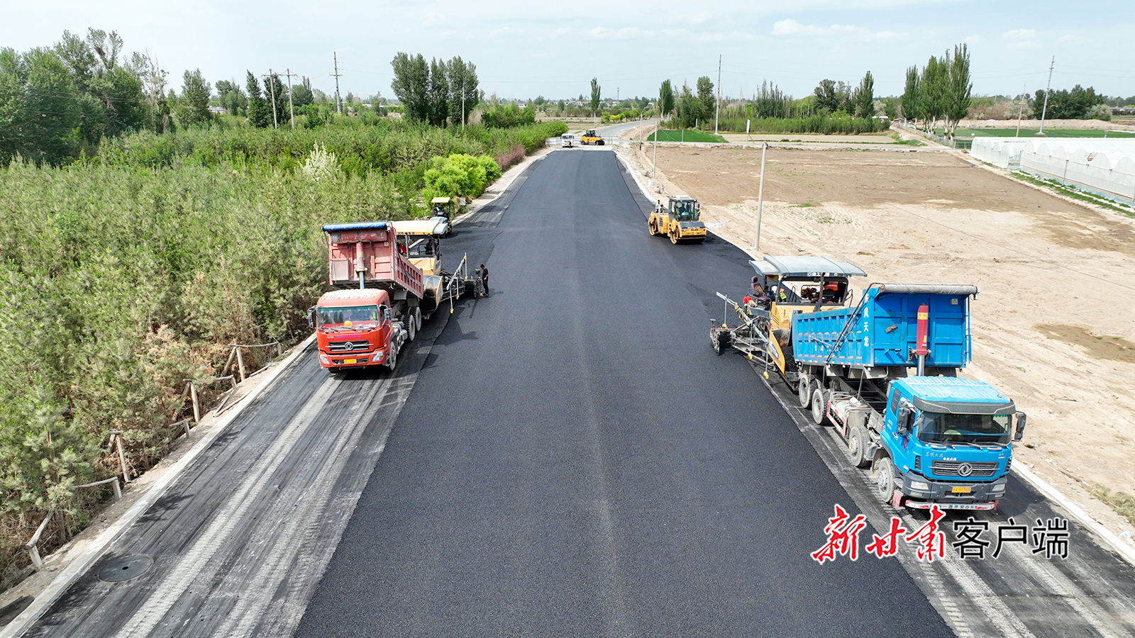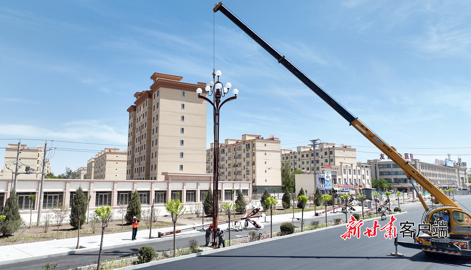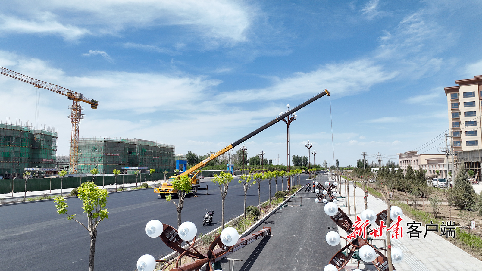 5月19日,在金塔县航天大道北段施工现场,工人正在进行道路铺设、道路灯杆架设等作业。近年来,金塔县始终把民生作为城市建设的根本出发点和落脚点,强化基础设施建设,拓展城市综合功能,改善人居环境,全面提升城市品质。