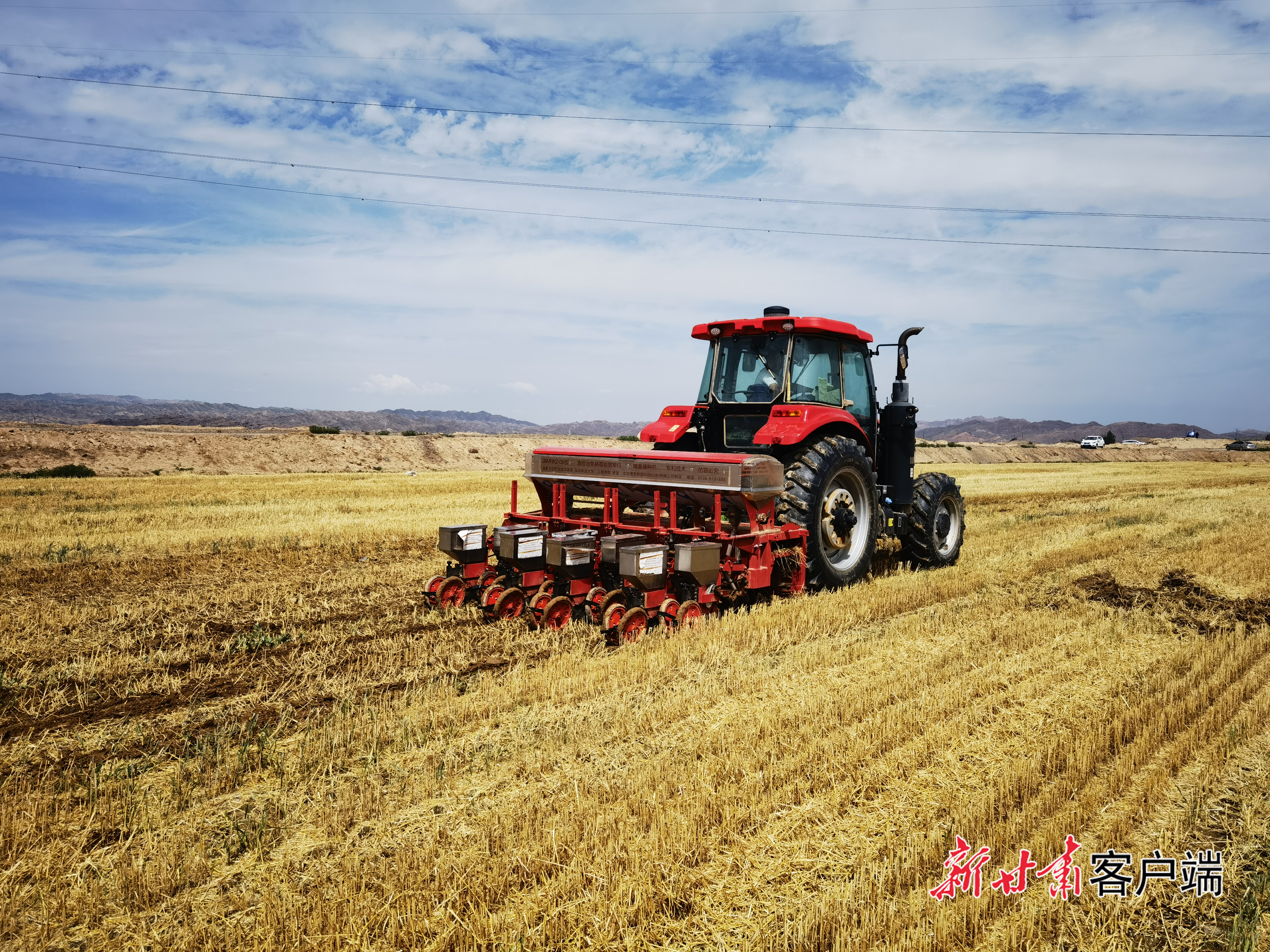 水泉镇玉碗泉村的麦后免耕覆秸精量播种现场演示。