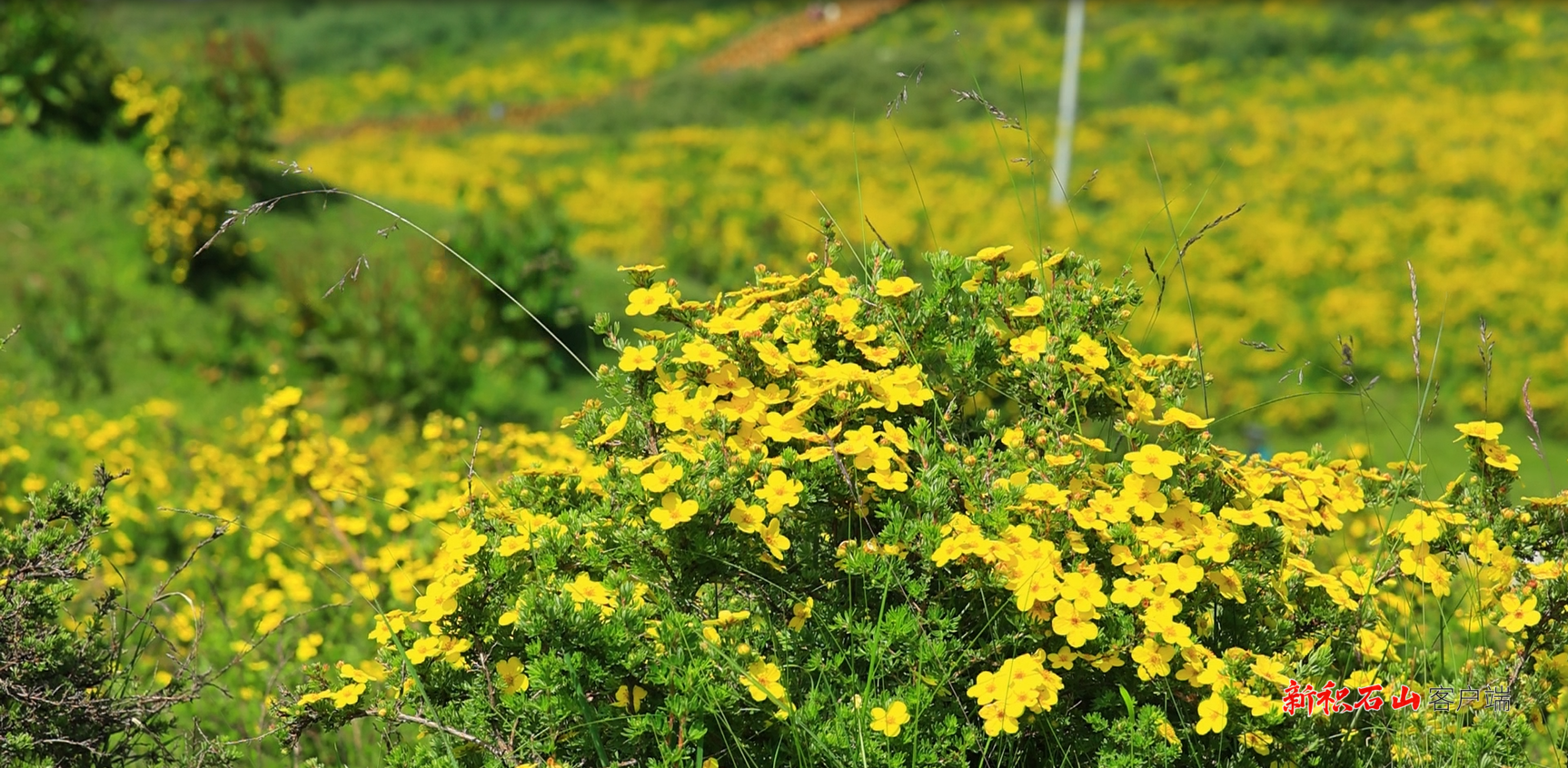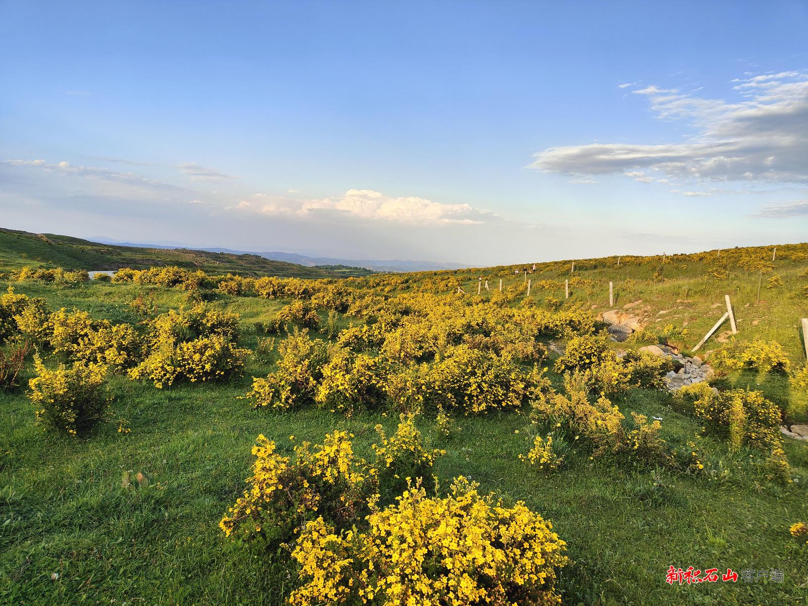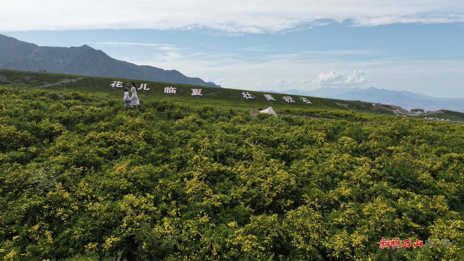 积石山的七月,黄草坪景区迎来一年中最绚烂的时节——近两万亩野生金露梅进入盛花期,连绵起伏的山坡仿佛披上流动的金色绸缎,蔚为壮观。这片生态奇观,以其磅礴气势和野性之美,吸引着来自全国各地的游客,景区内游人如织。