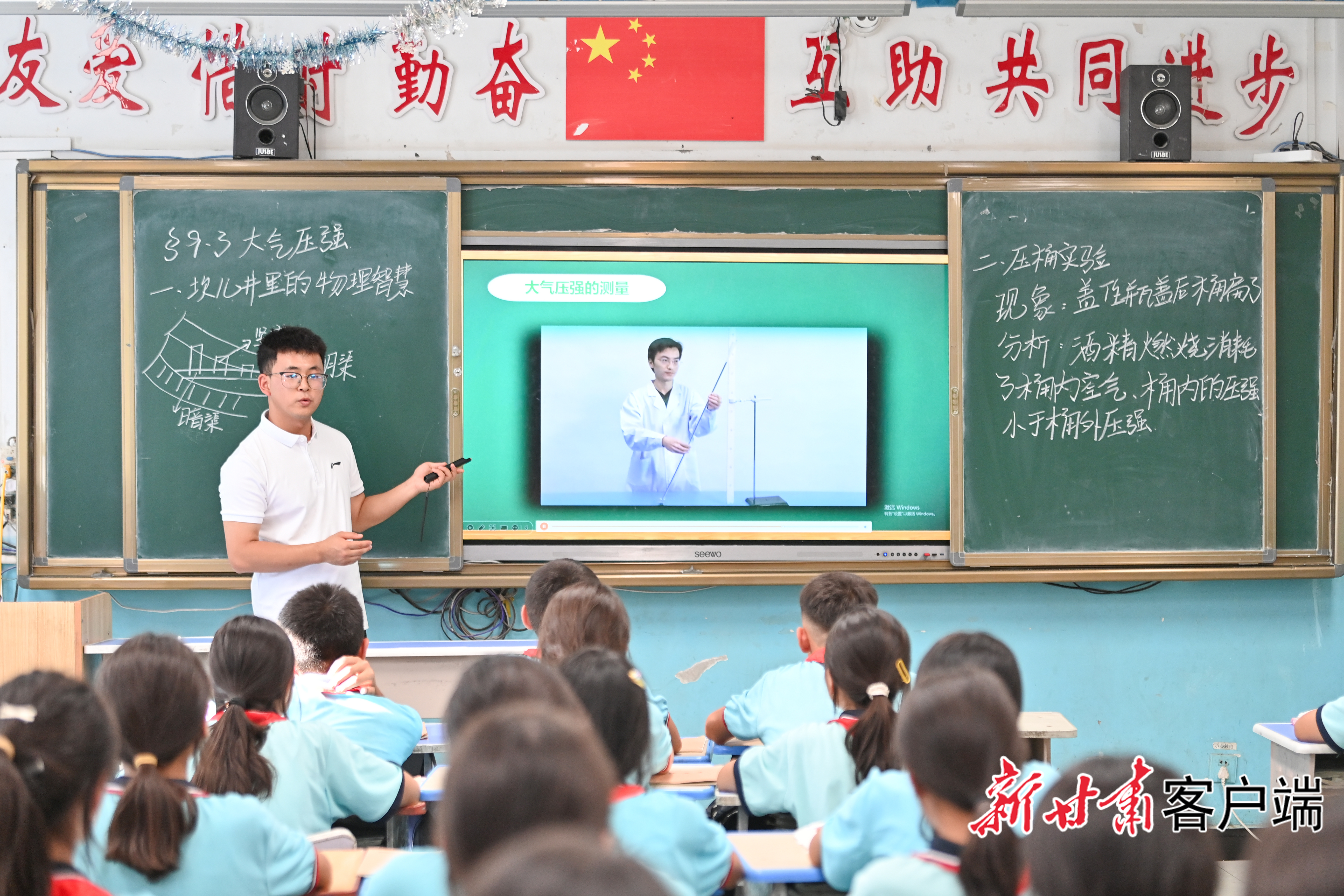 盛夏时节,在新疆阿克苏地区新和县塔木托格拉克乡中学七年级的课堂上,21岁的马俊龙正在给学生们上物理课。他是西北师范大学物理与电子工程学院大三的学生,作为第32批赴新疆阿克苏地区新和县支教团的组长,他深感责任重大。