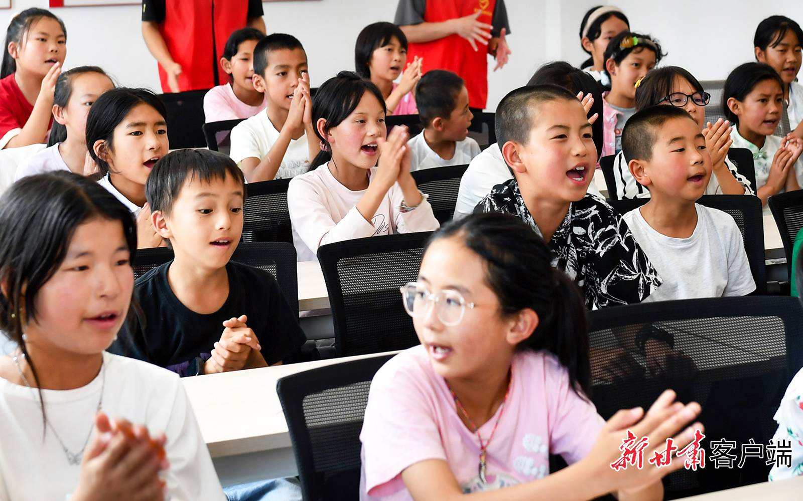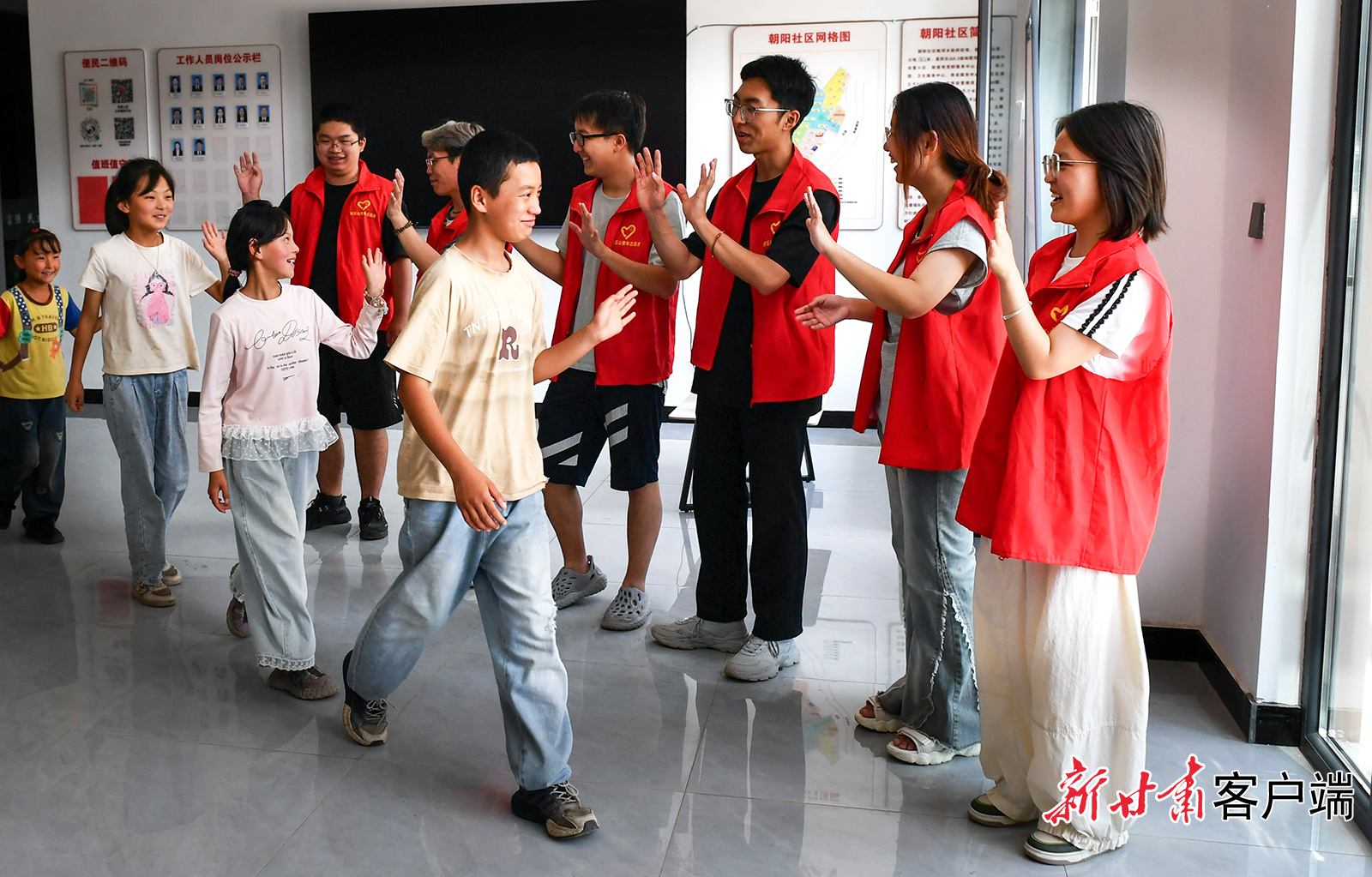 “让我们荡起双桨,小船儿推开波浪……”7月22日,积石山县胡林家乡朝阳社区党群活动中心里传来孩子们的歌声。在社区举办的暑期托管班里,志愿者和孩子们课后合唱,歌声与欢笑声交织在一起。